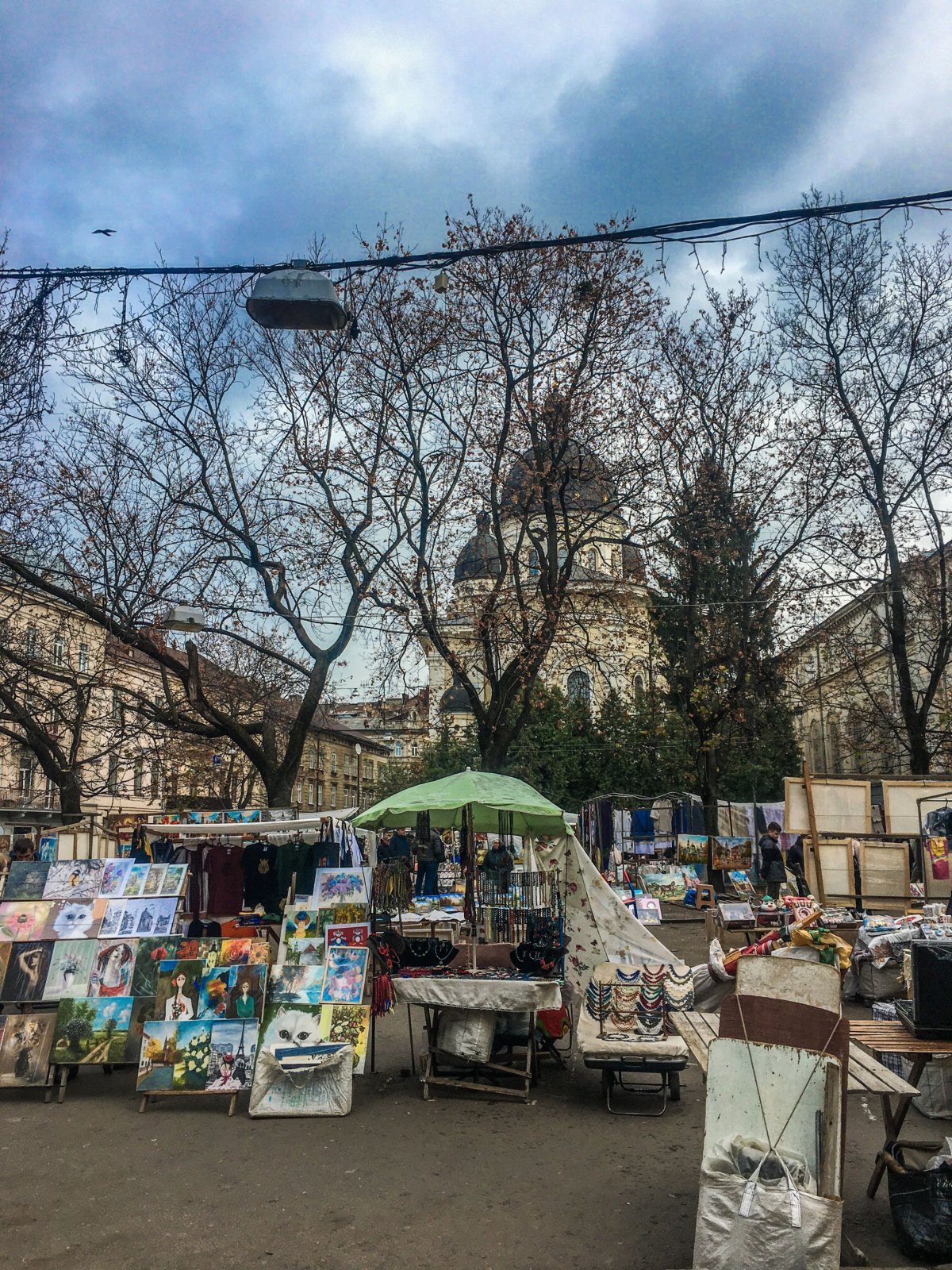 Po cestě jsme zapadli do Lviv croissants. Což rozhodně nebyla chyba. Čerstvý plněný croissant a silné kafe bylo přesně to co jsem potřebovala. Po skvělé snídani jsme se vydali objevovat město. První zastávka byla pravděpodobně u nejznámější dominanty Lvova - Lvovské opery. Nádherná stavba korunována sochami, symbolizujícími slávu, poezii a hudbu. Naše další kroky vedly přes náměstí kolem radnice, až na malý bleší trh. Na trhu se prodávají především knihy, ale i spousta dalších věcí. Můj bratr se opravdu vyžívá ve věcech, jako jsou staré kazety a gramofonové desky. Takže tohle bylo místo pro něj. Za pár hřiven si pořádně nakoupil, a byl spokojený.