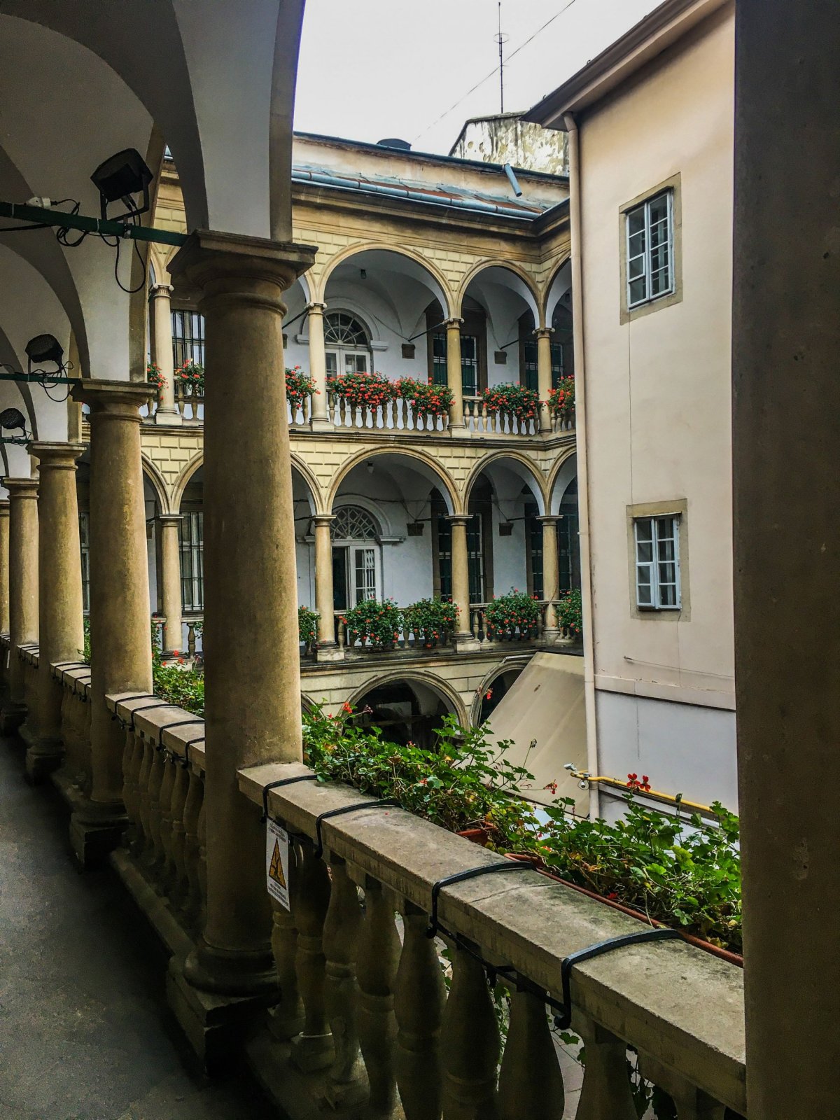 Potom jsme se naposled vrátili na náměstí, kde jsme ještě navštívili Italský dvůr. Zde sice nebylo až tak moc k vidění a restaurace byla bohužel zavřená. Takže bylo možné projít se tak akorát po balkoncích. Ale bylo to trošku jiné než zbytek dne. Jako projít tunelem a ocitnou se na nádvoří zámku, i když jste ještě 30 sekund zpátky stáli na náměstí města. Vstup byl jen za 10 hřiven, takže si nemůžu stěžovat. Na náměstí jsme ještě jako tradičně koupili pár pohledů a můj milý sourozenec si vybral magnetku do sbírky.