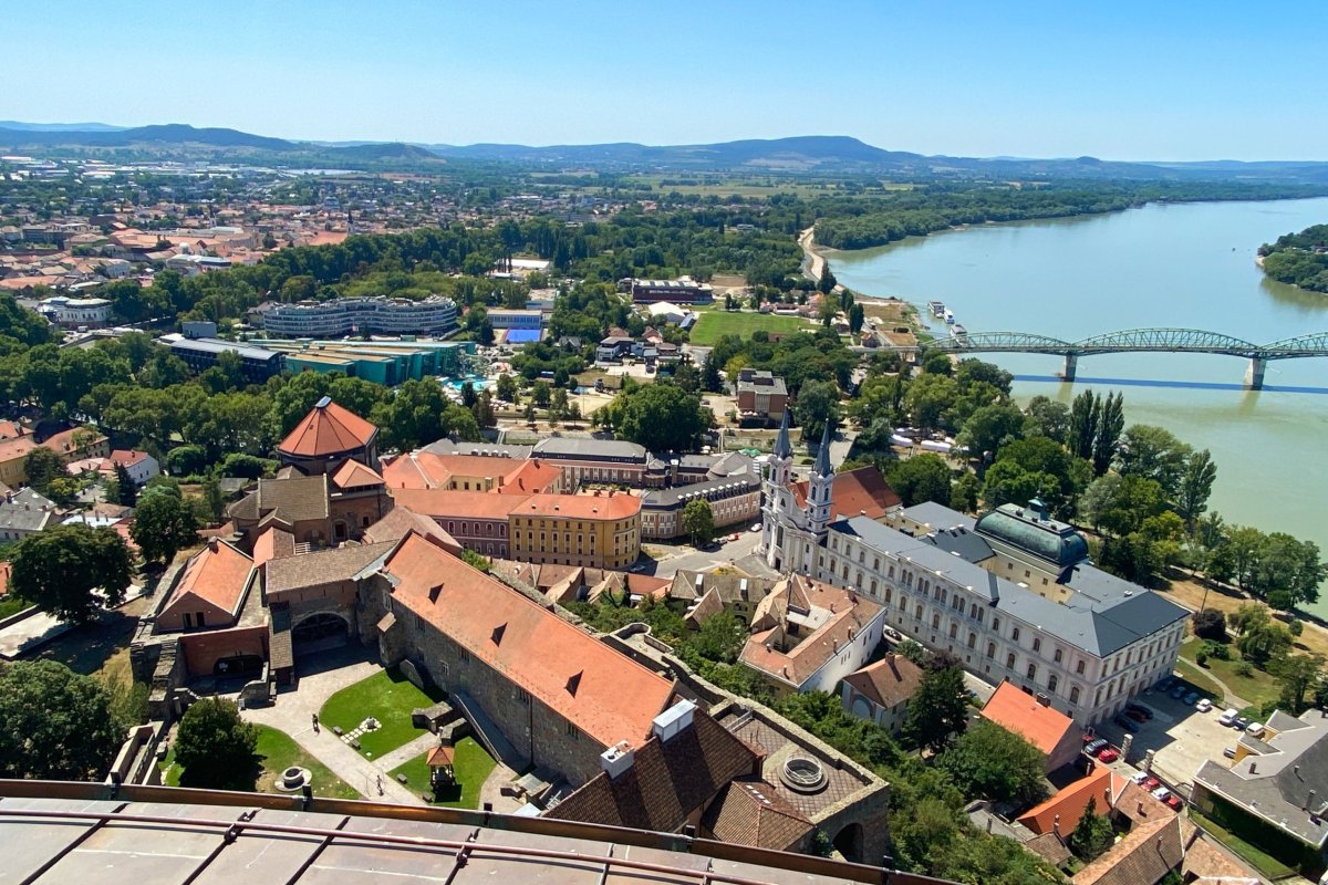 Bazilika Nanebevzetí Panny Marie a svatého Vojtěcha je největší symbol města a také důvod naší návštěvy. Kromě prohlídky interiéru je tu možnost vyjít nahoru na kupoli. Bazilika je opravdu obrovská a také uvnitř stojí za prohlídku. Cesta na kupoli je docela náročná, jde se většinu cesty po točitých a úzkých schodech. Kombinace tepla, únavy a stoupání pořád dokola po točitých schodech nám způsobuje trochu točení hlavy. Kdo je citlivější na nevolnosti nebo stísněné prostory, tak si rozmyslete, jestli je to pro vás. Na horní terase je ale na druhou stranu krásný výhled na celé město a vidíme i do zahraničí😁. Je i možnost navštívit nedaleký hrad či se projít podél Dunaje, ale to už časově nezvládáme.