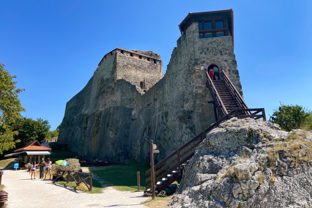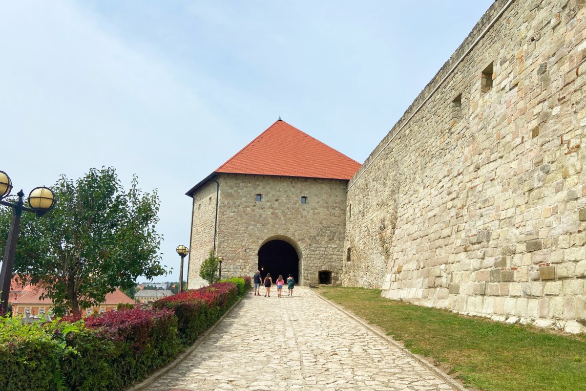Protože tu jsme jediný den, vyrážíme odpo na procházku vinicemi s cílem dostat se až na hrad, který je na úbočí kopce. Cesta je teda do naprosto brutálního stoupání a v kombinaci s letním teplem je to pro nás dost zabíračka. V cíli je opravdu krásný výhled na okolí. Většinou areálu se dá navíc v klidu a zdarma projít. Jen to chce dávat pozor, ať nedopadnete jako já – při sestupu ze stráně mi podjíždí nohy, během chvíle ležím a mobil letí směr velký šutr. Oznamuji tak přítelkyni, že jsem se hned první den stihl zmrzačit a že jdeme asi zpět. Naštěstí je to jen víc odřená ruka a noha (styl silniční lišej) a maďarské lázně to spraví.