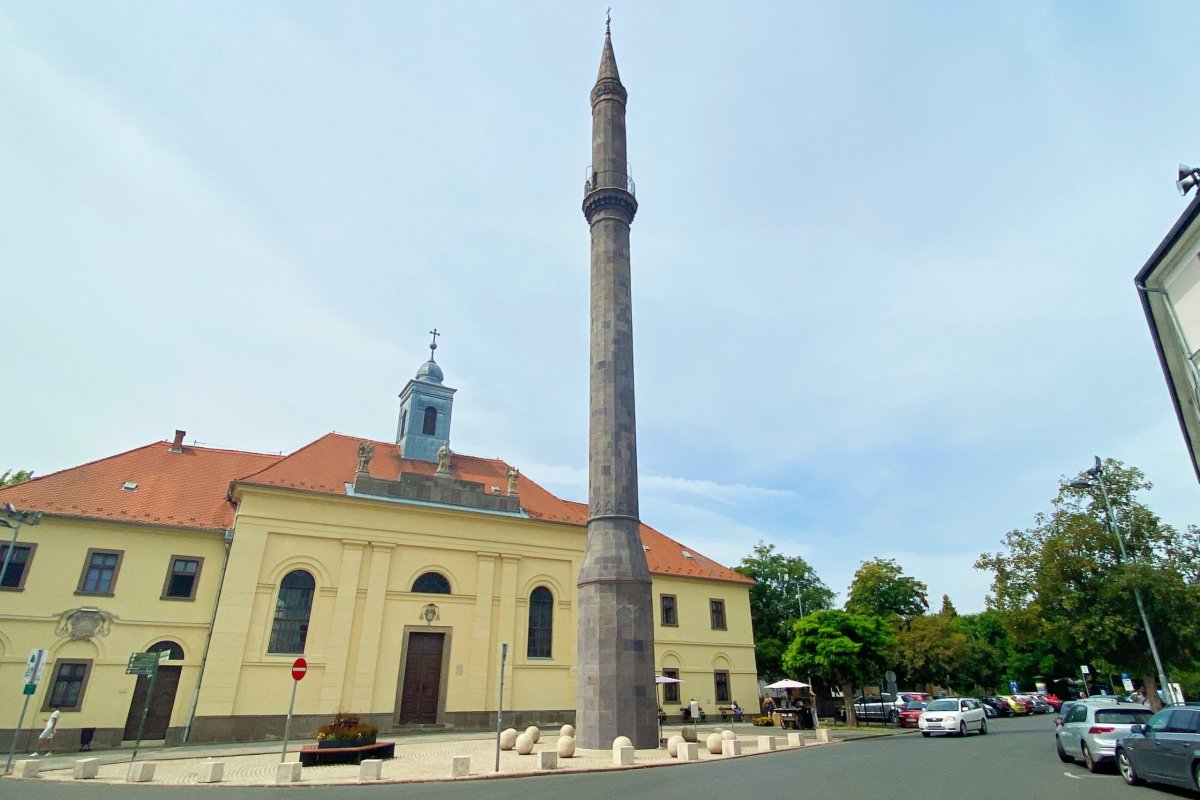 Pokračujeme k minaretu. Po zkušenosti z Ostřihomi si točité schody nahoru necháváme ujít a stačí nám pohled z ulice. Raději tak pokračujeme dál.