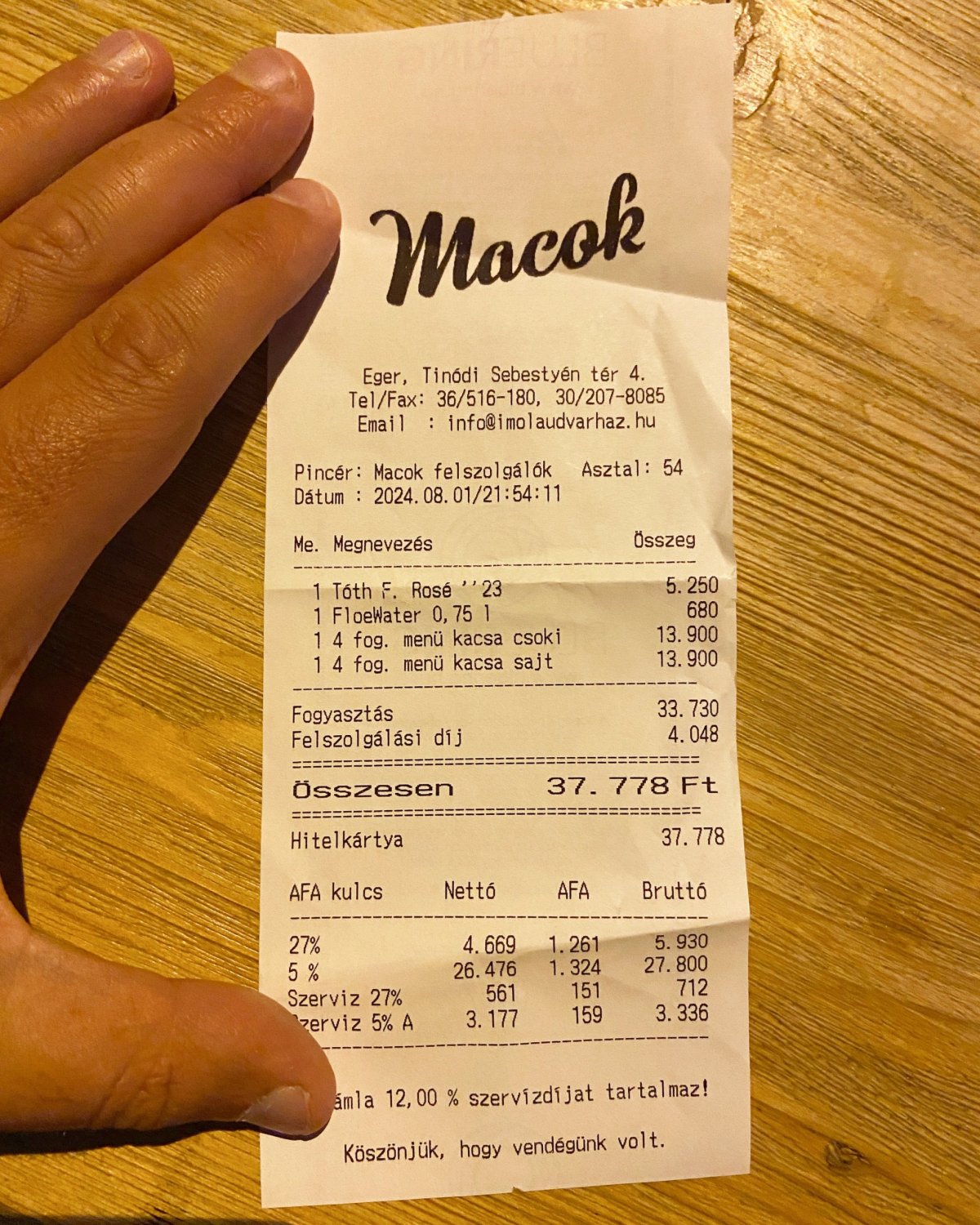 Odpoledne se vracíme zpět do Egeru a stíháme krátké nákupy a dáme si malý oddech. Eger je samozřejmě město vína🍷, však odsud pochází slavné červené víno Egri Bikavér. V centru je poměrně dost vinoték na nákup tekutých zásob. Komu to nestačí, za městem je Údolí krásných žen, kde je další výběr sklípků a obchůdků. Večer jdeme opět k „Mackovi“, tentokrát už ne na menu, ale jednotlivá jídla. Líčka i steak z mangalice byly oboje výborné. Po večeři se zastavujeme ještě na dvě pivka v nedalekém craft pubu🍺 a další den je za námi.
