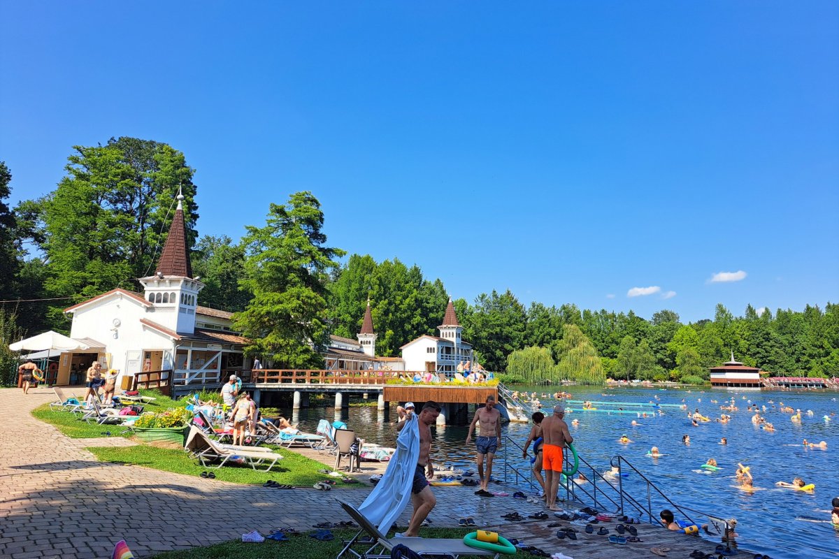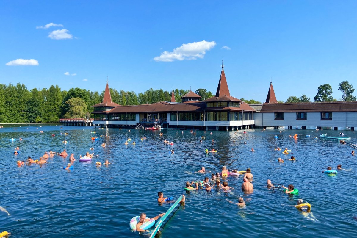 Hévíz je známé lázeňské město, na jehož kraji je velké a hluboké termální jezero. Celé místo je častým cílem rakouských turistů, což je i poznat na jazykové bariéře. Anglicky se tu nikde moc nechytáme. Kousek za hotelem si dáváme oběd, jdeme rychle ještě dokoupit suvenýry a pak už hurá k vodě.