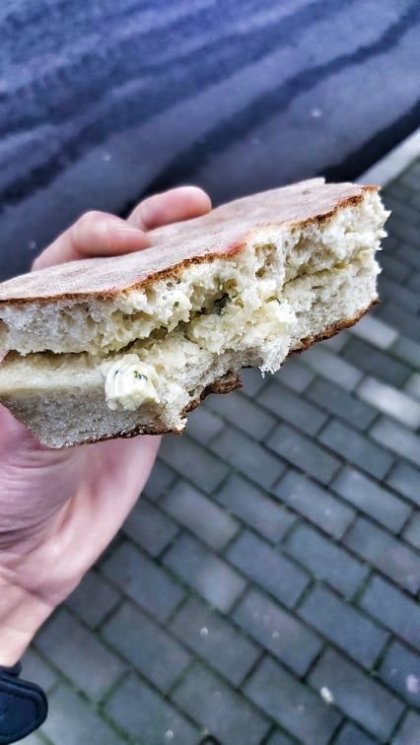 Další vyhlášené jídlo je místní chleba Bolo do Caco (čte se kah-ko). Je to naprosto úžasný, nadýchaný a jedinečný, typický madeirský chléb, který se prodává se většinou rozpečený v různých variantách a pomazaný bylinkovým máslem. Můžete si to dát jako snack či k obědu, protože je toho porce pro tři a stojí cca 2,5 eura.