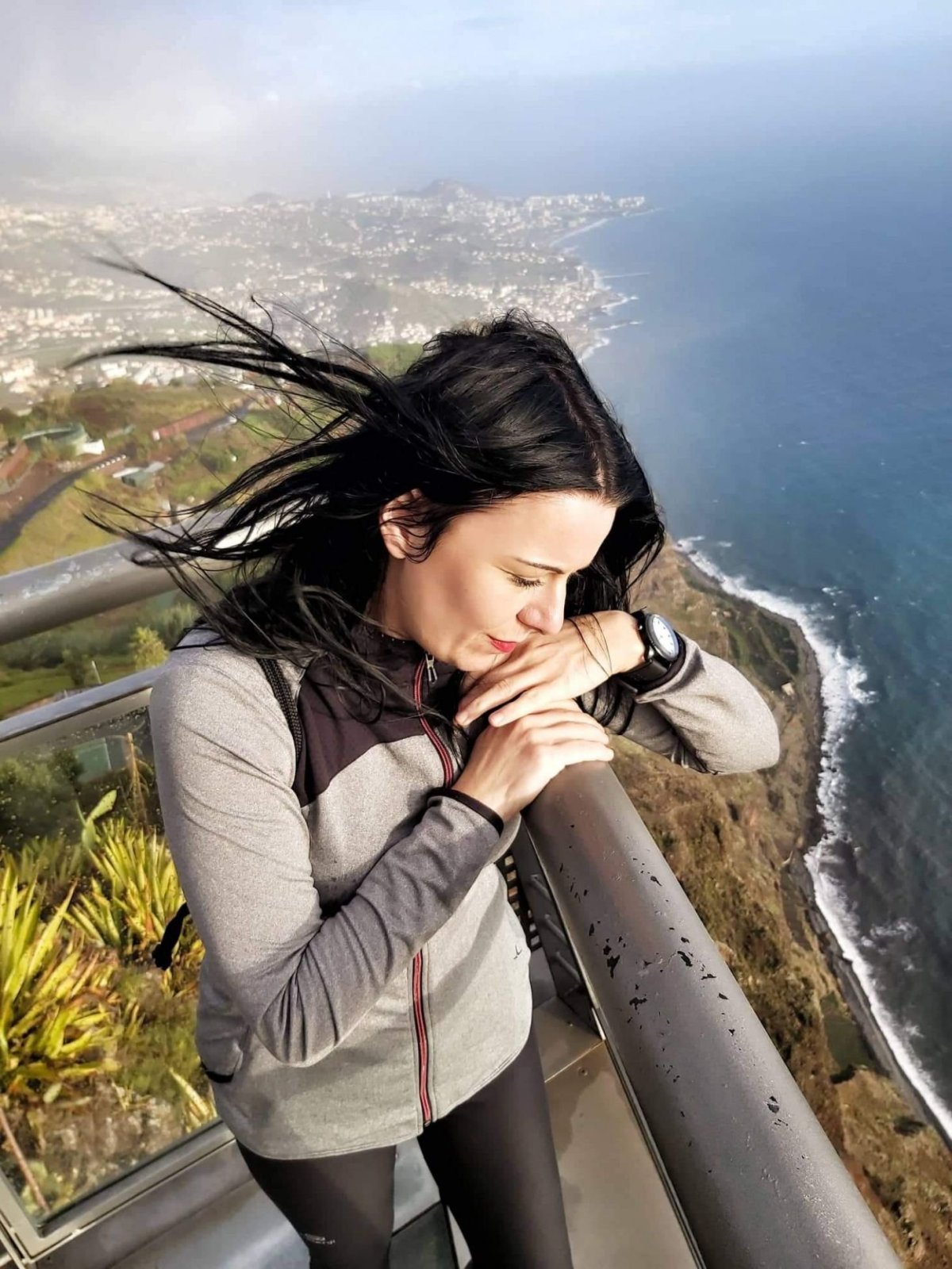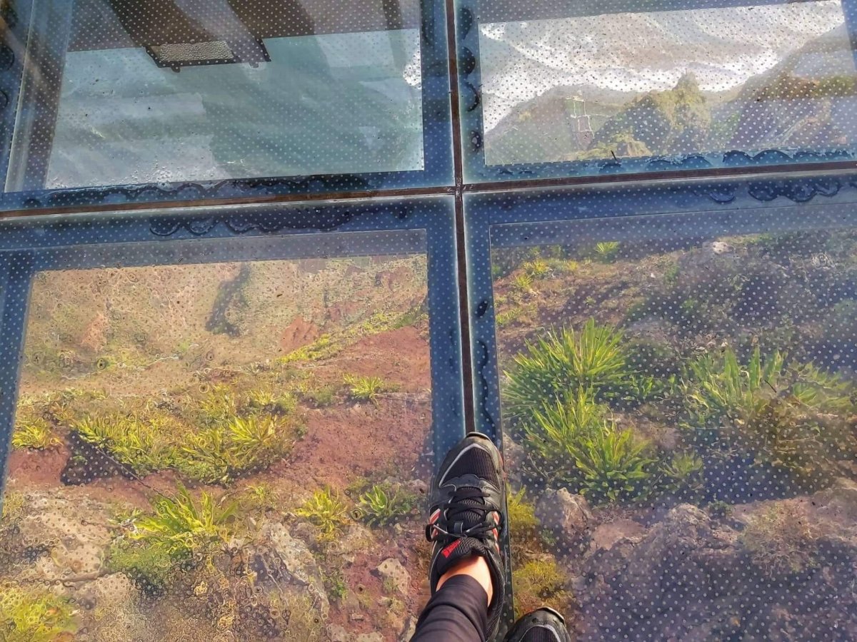 Přistání máme za sebou (viz. LETIŠTĚ MADEIRA). Auto jsme také půjčili na pohodu a hladce (viz. DOPRAVA NA MADEIŘE), vymotali jsme se z Funchalu a dali malou zastávku na vyhlídce s názvem CABO GIRAO. Útes Cabo Girao se tyčí 580 metrů nad hladinou moře a je údajně druhým nejvyšším útesem světa. To prý ale není pravda, je až desátý (nejvyšším útesem na světě je Mitre Peak na Novém Zélandu, za ním následuje celá řada útesů na Hawai, v Grónsku, ale i v Evropě), Cabo Girao má však jako jediný z první desítky světových útesů uměle vybudovanou vyhlídkovou plošinu a je určitě nejpřístupnější. Je jednou z nejnavštěvovanějších atrakcí Madeiry, denně sem přichází 1800 lidi. Také byl nějakým časopisem vyhlášený jako jeden z pěti světových útesů s nejúžasnějším výhledem. S tím naprosto souhlasím. Pohled z útesu je dechberoucí. Na východ je hlavní město ostrova Funchal a rybářská vesnice Camara de Lobos, na západ další útesy příkře spadající do moře. Celá plošina/podlaha vyhlídky je průhledná, takže mega zážitek! Pod nohama pohled na terasovitá políčka, vinice a mořské vlny tříštící se o skály je vážně mazec!