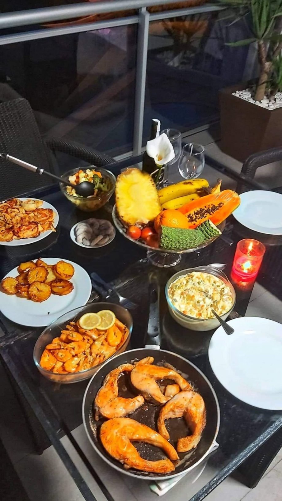 Chvíli jsem ještě přemýšlela, že dáme levádu Inferno, ale vzhledem k počasí – naprosto vymetené blankytné nebe – měníme plány. Jsou Vánoce, já mám zřejmě hnisavou angínu (teplota 28 - 39 mě provází celej trip, z nosu nechutná rýma a ještě hůř to, co vykašlávám - je na čase trochu zvolnit. Vracíme se do Canica a hrneme k moři. Koupat se na Štědrý den v oceánu… další splněný sen! Plánujeme to zopakovat ještě večer po večeři. No a pak už jenom naše krásné společné teráska, kavička, vanilkové rohlíčky, Madeirské víno…losos, krevety, bramborovej salát, všechno možné místní ovoce, sýrečky, šunčičky, ...prostě naprosto stejné obžerství jako doma :D