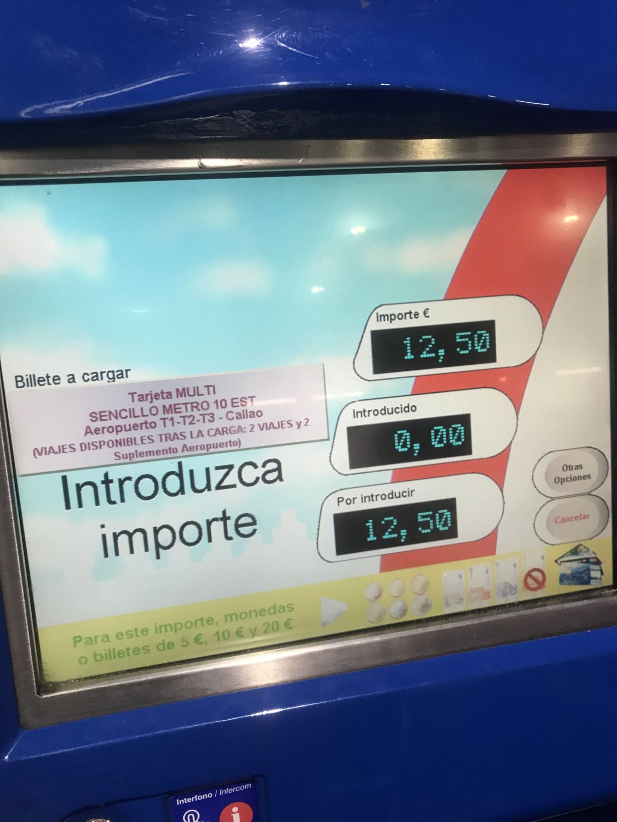 2/ metrem z letiště směr Nuevos Ministerios - růžová trasa č.8 - pět zastávek na stanici Nuevos Ministerios (nekonečné zastávky!), zde přestup na modrou - asi 4 zastávky a další přestup na žlutou s konečnou stanicí Calleo