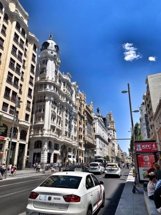 Ubytování jsme měly na jedné z hlavních ulic, Gran Via. Přirovnala bych k našemu Václaváku. Nádherné historické stavby a v jedné z nich budeme bydlet my! Když otvíráme z historického náměstí kovová vrata k ubytování, jsem nadšená...To přetrvává i v ubytku, protože jsem vybírala dle dvou kritérií - v centru a co nejnižšín cena. Hodnocení na bookingu bylo kladné jen stran lokality, zbytek nic moc. Opak byl pravdou, takže opravdu radost. Počáteční romantiku a nadšení ale vystřídalo naprosté zhnusení nad tím, jak hlavní tepna s blížícím se večerm a nocí “žije”. Nemyslím jen noční život a ruch, který bych zde pochopila. I když byl pod našimi okny nepřetržitý mejdánek každou noc do cca 5ti ráno. To nebylo rozhodně to nejhorší. To, co zůstalo na chodnících ve městech, to bylo to, na co asi nikdy nezapomenu. Když jsme vyšly kolem půl deváté ráno z domu, po kotníky na chodníku odpadky. Přestože jsou odpadkové koše po Madridu á 3 metry od sebe a byly většinou prázdné, na zemi neuvěřitelný bordel. Obaly od mekáče, plechovky, všechno! Všechno, co lidé sní, vypijí, od toho obal odhodí na zem. Jsou tak zvyklí.. Nechápu to. Nedá se to slovy ani popsat. Každé ráno místní úklidová četa vystartuje do ulic, nejsou to ale jenom zaměstnanci se smetáky a lopatami. Je to auto s cisternou, kde neskutečným množství vody splachují tento bordelz ulic. Den za dnem! Pro mě naprosto neskutečný a něco, co Madridu nejsem schopná odpustit. Žijeme v jednadvacátém století, ale tady jsem se vrátila hodně zpátky. Ne časově, ale vývojově. Mám v hlavě ještě velice čerstvý Kyjev, Ukrajinu. Místo, na které řada lidí pohlíží s despektem. Já se tady dívám v centru Madridu na ulici pod svými okny a jenom žasnu. Vzpomínam na nádherný, prostý a neuvěřitelně čistý Kyjev a je mi až smutno. Právě tady je vidět, kam “civilizace”, “všehodost” a blahobyt spěje. Do záhuby! Lidé ztrácí soudnost. Děcka absolutně nerespektují hodnoty. Neznají odpadkové koše!