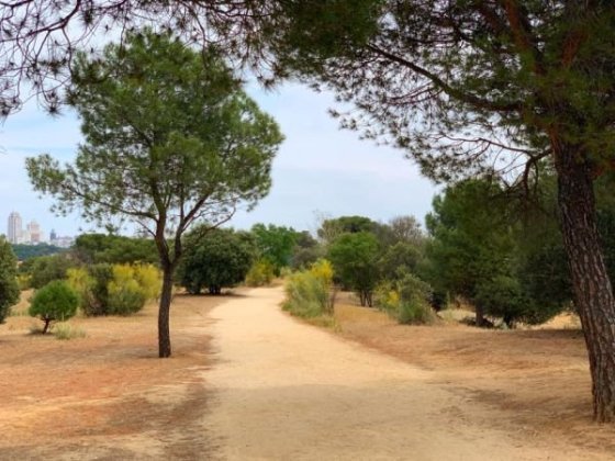 Z trhu jsme přešly úplně jinou cestou k místní lanovce - teleferico. Tato lanovka spojuje město s parkem (spíš lesíkem) Casa de Campo. Ta je opravdu zážitek, který doporučuji všem. V momentě, kdy jsme usedly do kabinky a vznesly se nad město, v tu chvíli jsem věděla, proč výlet do Toleda nevyšel. Tohle jsem prostě měla zažít! Madrid jako na dlani. I ten Královský palác se vší svou mohutnosti byl úplná miniatura. Jízda lanovkou trvala asi 12 min., takže jsme si všech panoramat užily opravdu dosyta. Zpáteční cesta na kopec stála 6 € a rozhodně jí doporučuji zaplatit v obou směrech. Vzhledem k tomu, jak dlouho jsme lanovkou jely, pěšky to musí být rozhodně déle, než nám ukazovaly mapy (třičtvrtě hodiny chůze).. Mimo to, že máte celou metropoli jako na dlani, dostanete se během chvilky z ohromujícího a pulzujícího města do nádherného zeleného parku, skoro lesa. Je to zelená oáza uprostřed betonu, místo, kam zejména v neděli místní lidé odjíždí oddechnout z města. Když sem vyjedete, jste najednou v úplně jiném světě. Světě rodin, kočérků, smějících se dětí, piknikivých dek a košů. Uvidíte ve stínu stromů lidi číst knížky, pospávat, srkat sangrii (vlastně to už ne, my už tam nebudeme 🙈😂), prostě spoustu rodin, co zde kempují, piknikují a užívají si nedělní pohodu. Úžasný zážitek! Dostanete se sem buď pěšky jako my nebo ze stanice metra Arguelles.