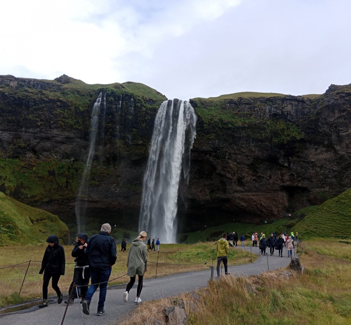 Mezitím se už autobus přiblížil na první zastávku. První hodina bude strávená u nádherného vodopádu🏞️🌊 skogarfoss. Ten je jedním z největších a také nejkrásnějších vodopádů na Islandu. Je 25 metrů široký a 60 metrů vysoký. Napájí jej řeka Skógá, na níž je vodopádů více. Díky vodní tříšti, která vodopád obklopuje, lze za slunného počasí pozorovat jednoduchou či dvojitou duhu. Odsuť přidávám video.