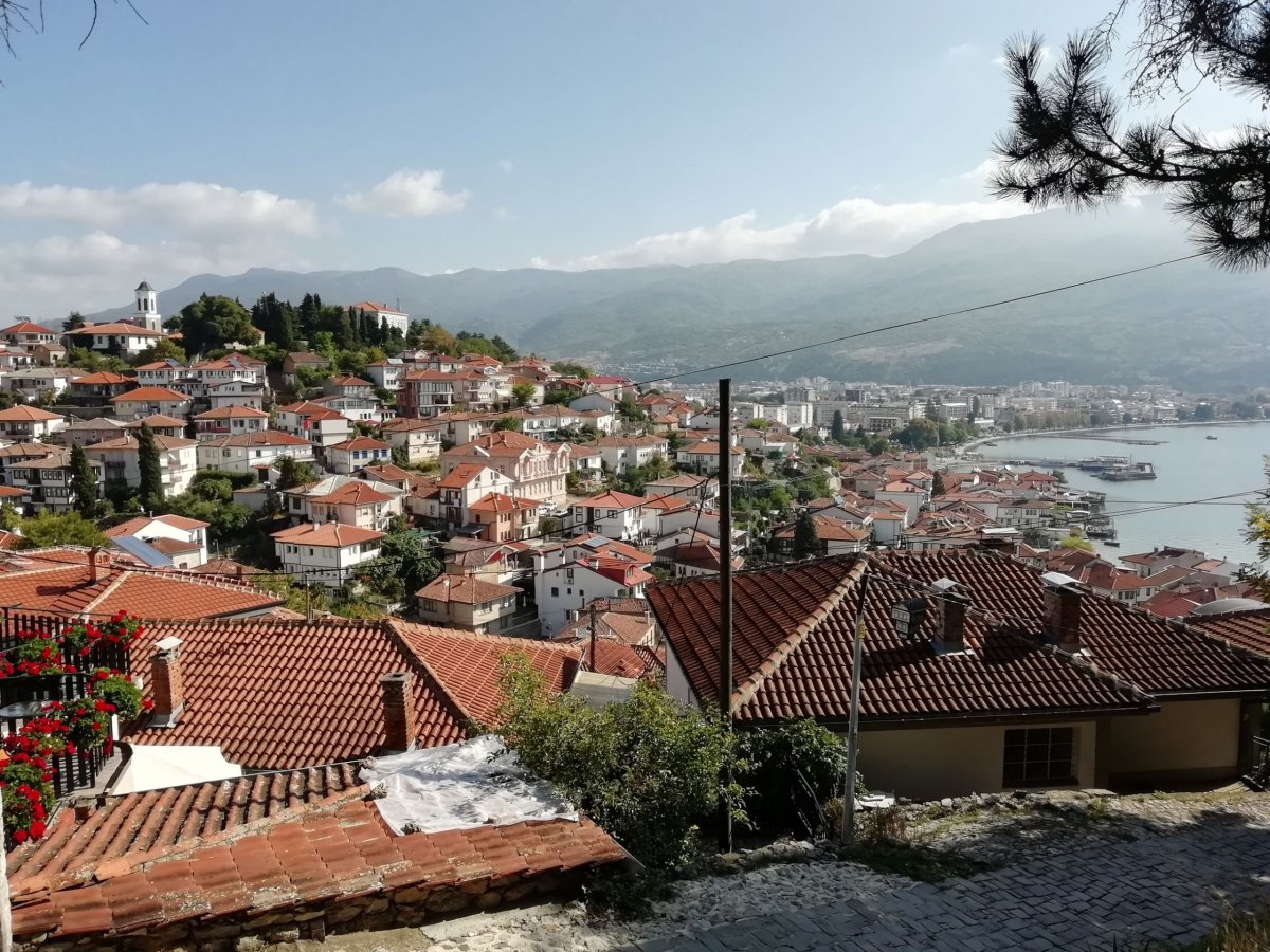 Cesta trvá opravdu kratičkou dobu, hodinu dvacet. Už po rozhlédnutí se ze schůdků letadla, si připadáme jako 40 let zpět. Letiště je malinkaté, budova opravdu stará, procházíme pasovou kontrolou, kde nás dlouho dusí, ale nakonec nám vrací pasy a my můžeme projít ven, kde už čeká halda taxikářů. My jsme ale přesvědčeni, že zde má stát autobus, který obsluhuje přímo Wizzair, bohužel se tak neděje, což nám vysvětluje i taxikář, který za námi chodí dobrých 5 minut. Nakonec mu podlehneme a za 10 eur se svezeme do centra. A máme zde první perlu balkánského výletu. Když se nás taxikář zeptá, z jaké země jsme a my mu řekneme "Czech republic", chvilku se zamyslí, přemýšlí a nakonec z něj vypadne "Čechoslovakia?" Trvá mi, nevím jestli se mám smát nebo co mu na to řeknu, ale nakonec mu to raději odkývu, protože nevím, co by se s ním stalo, kdyby zjistil, že jsme téměř 30 let rozdělení. Vystupujeme v centru a naše první cesta míří na místní autobusové nádraží (https://1url.cz/DMYeJ), protože se druhý den potřebujeme dostat do hlavního města Skopje. Trasu Ohrid-Skopje obhospodařuje společnost Delfina Tours (https://1url.cz/1MYei), na jejich webových stránkách najdete také rozpis odjezdů autobusů, případně se přesvědčit přes jejich e-mailovou adresu, což jsem 3 týdny před odletem udělal. Jízdenky jsme pro jistotu koupili už den předem za cenu 500 MKD za osobu. Abyste měli představu, 47 Kč je 100 MKD, takže počítání je jednoduché, prostě polovina denárů je česká hodnota.
