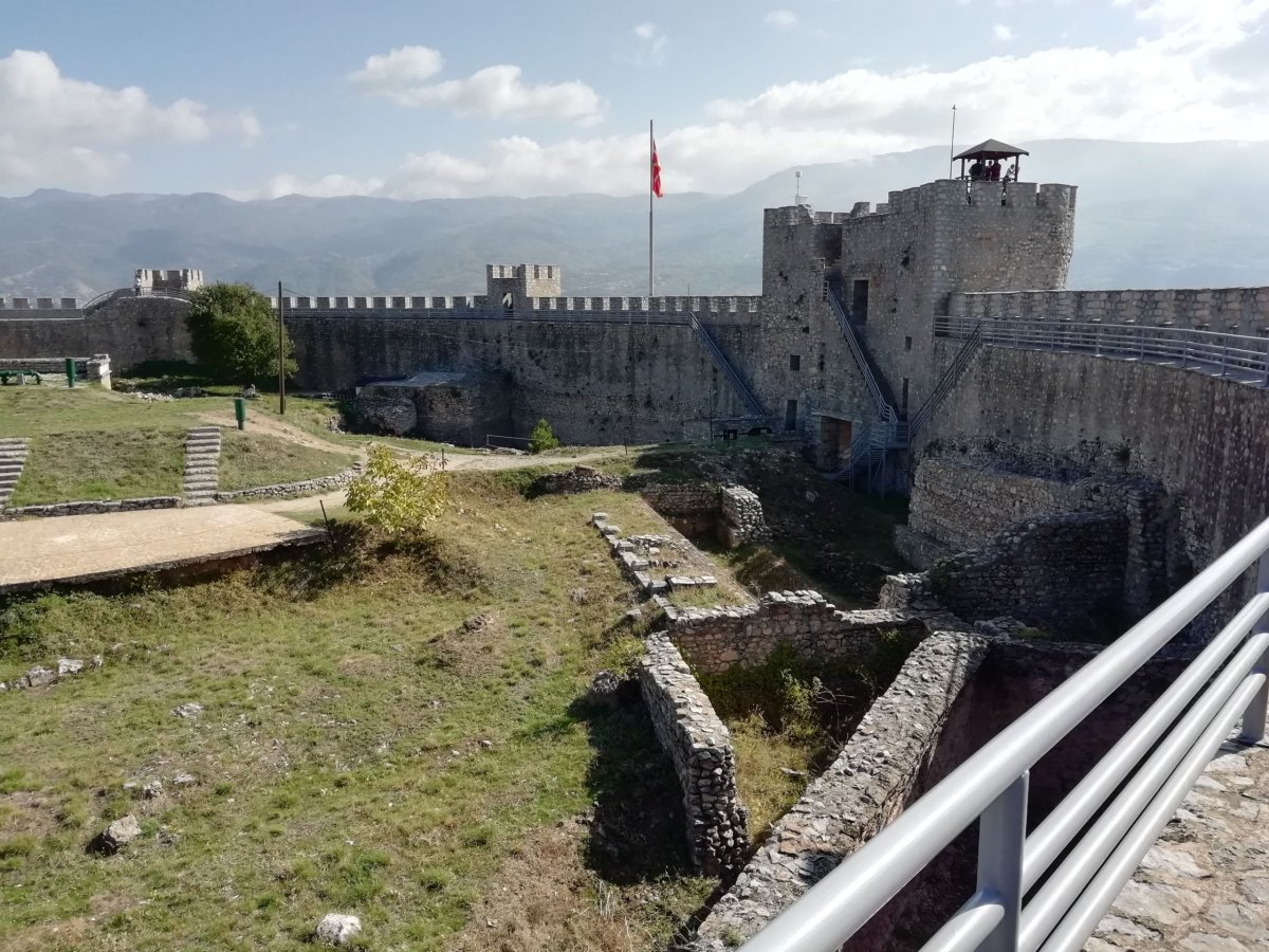 Centrum města zatím není moc zalidněno, ale to se během poledne změní. Procházíme uličky a narážíme na první památku, divadlo postavené 200 let před Kristem. Vycházíme až na kopec, což v Ohridu není žádná sranda. Je to tady z kopce do kopce. Naskýtá se nám úchvatný pohled jednak z uličky, tak z nejvyššího bodu centra Ohridu, Samuelovy pevnosti. Vstup 40 MKD pro místní a 60 MKD pro zahraniční turisty. Dvojí metr.. Pánovi na pokladně dáváme 200 MKD, nemá ale drobné, tak nám 100 MKD vrací, takže vlastně trojí metr.