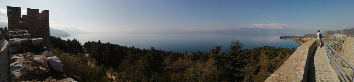 Po obědě jsme měli za úkol poslední hlavní památku - kostel St. John at Kaneo. Vyfotit ale cokoli v Makedonii je těžké. Všechny památky mají umístěné na jih a nikdy nejde udělat dobrou fotku, navíc s průměrným telefonem. Kostel je na úžasném místě, opravdu must see, který stojí za to vidět.