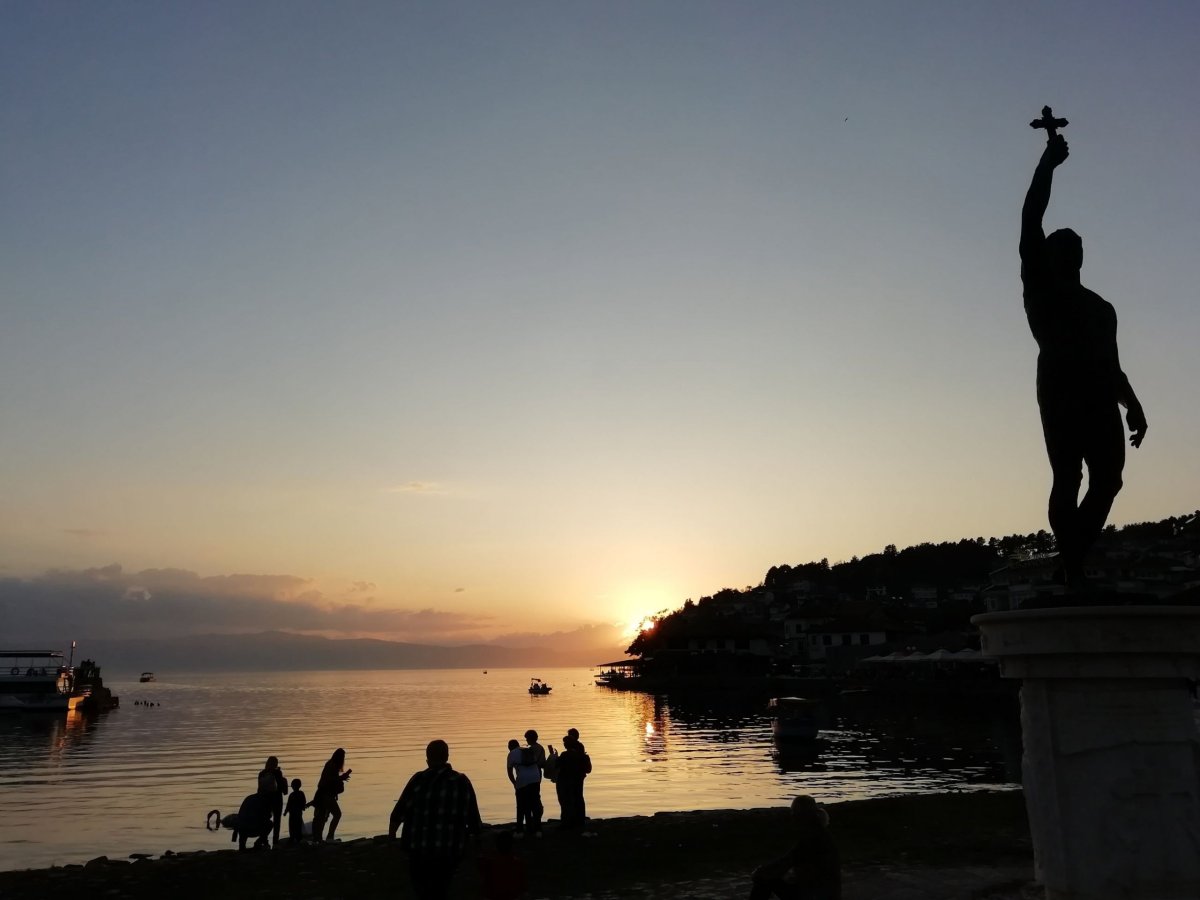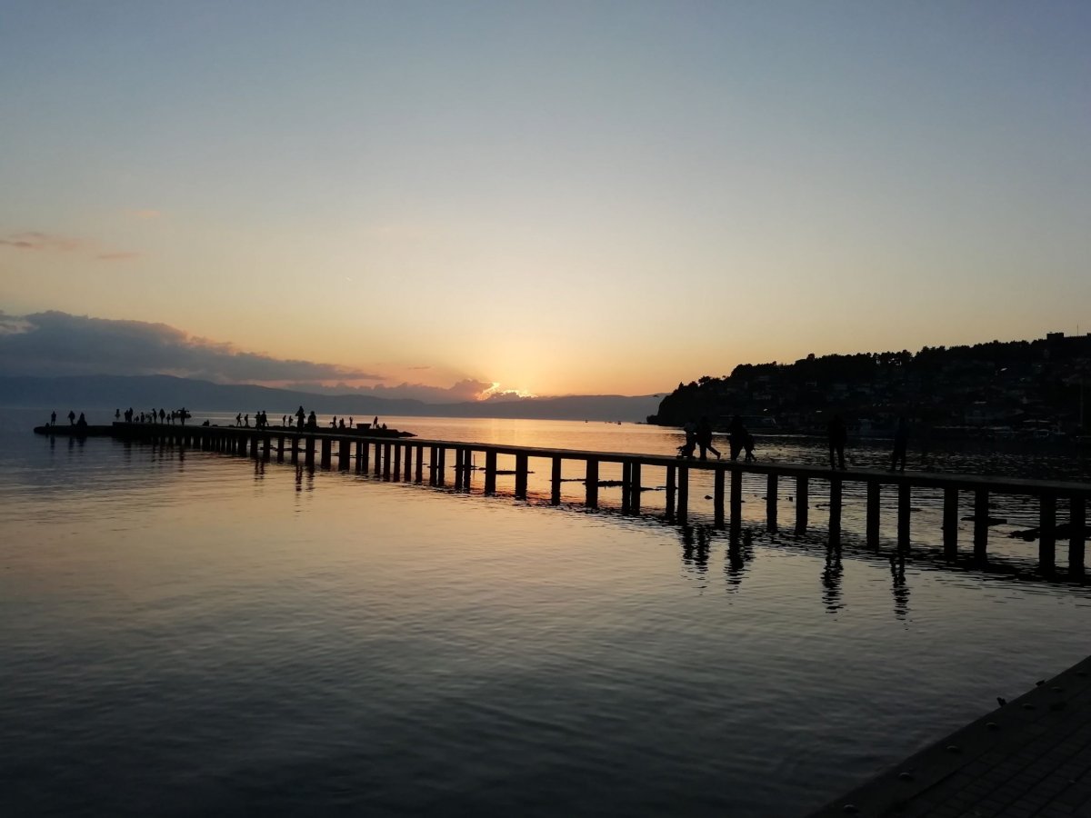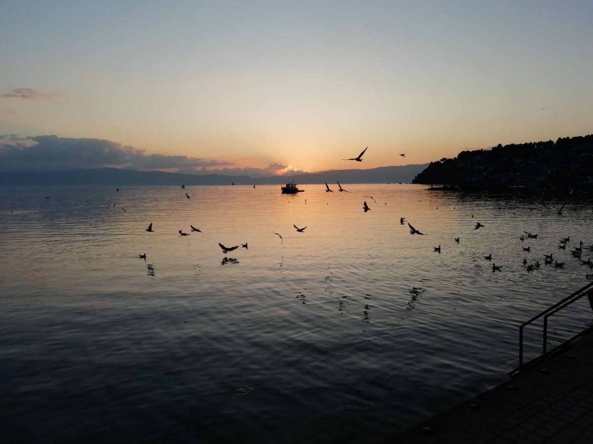 Nastal čas večeře, dáváme si jídlo a jdeme nakoupit potraviny na ranní cestu do Skopje. To se daří a zároveň to krásně vychází na západ slunce. Úchvatná podívaná, tohle stojí za to.