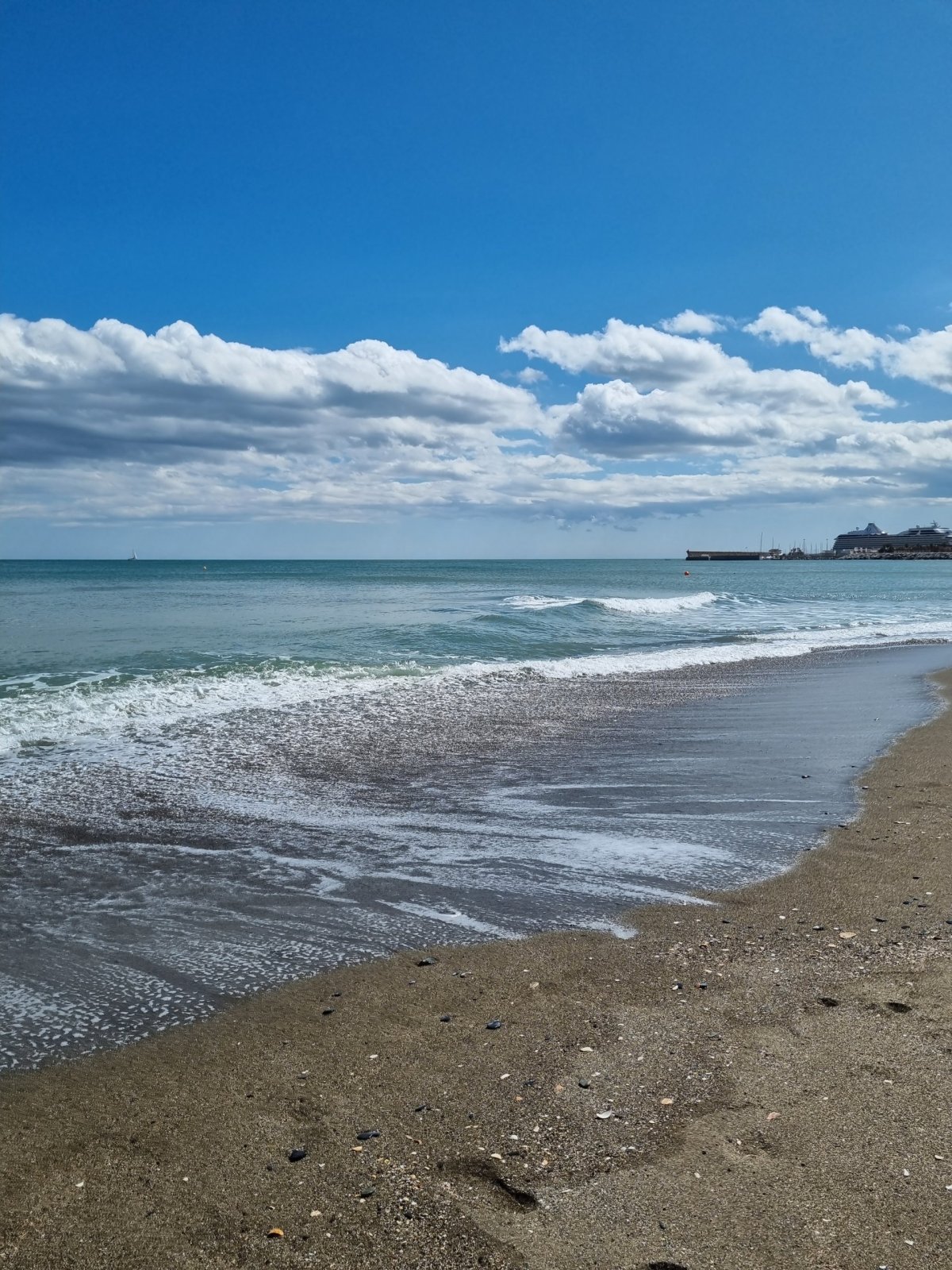 Po procházce v Alcazaba jsme se vydaly na Playa de la Malagueta. Bohužel počasí nám ten den úplně nepřálo ale i tak jsme konečně po zimě nasály mořský vzduch a to nám stačilo. K obědu jsme si daly výbornou Paellu s mořskými plody. To je prostě must have v Malaze.