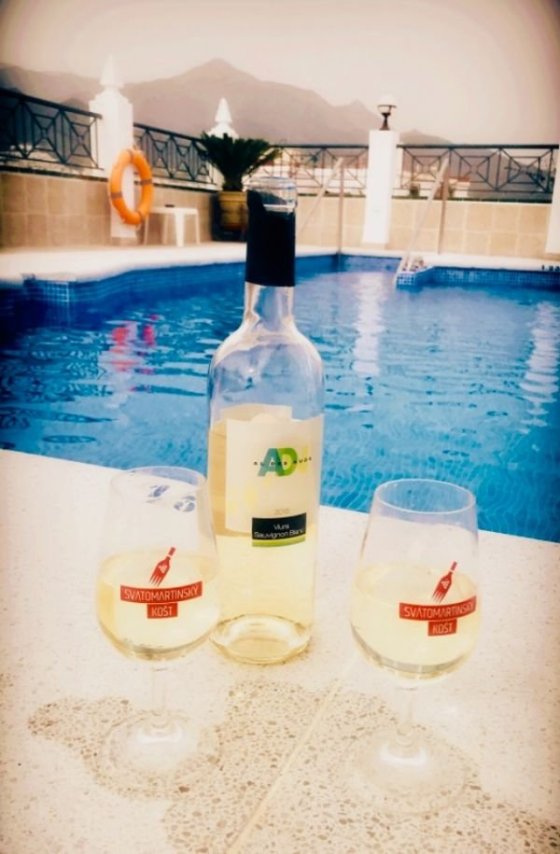 No, budu upřímná - balkón jsme neviděly :) Jednak jsme to den předem přehnaly s vínem a ráno se prostě obyčejně vyspaly do růžova (i to je někdy na cestách potřeba - zvolnit, nelpět na cílech a užít si hotelovou postel a minibar :D . Prostě umět vyhodnotit situaci a říct si priority...), no a hlavně - po celou Malagu nám lilo, pršelo nebo minimálně mžilo a když se stalo a na hodinku vykouklo sluníčko, byl to pro nás sice skoro zázrak, ale myslím, že právě tady nám oboum došlo, že zamračené dny mají svoje kouzlo. Cesta do Nerjy byla v tomto případě opravdu víc o cestě než o cíli. Sedět ve vyhřátém a přetopeném autě, aby když zastavíme na decheroucím místě - a že jich cestou bylo - vyběhneme na pár minut v našich žabkách a zabalené snad i do ručníků z auta a majíc reálný strach, že venku je snad tajfun a nejen nás, ale i tu naší malou moto-srandu větr odvane na jiný konec Španělska...tak přesně tohle byla dubnová Malaga :) Nicméně i přes počasí, přes to, že se nám vážně nepovedlo dostat se na golfové hřiště ani na minutu :D a už vůbec jsme nelebedily na pláži v houpací síti - byl to ten nejvíc nezapomenutelný trip. Začalo to v letadle, kde jsme pro sebe měly tři sedadla - asi zázrak... Aby nám cesta utíkala, koupily jsme si láhev Martini a na této Martini vlně jsme vpluly do španělské skorometropole. Potom jsme přesedlaly na sangrii a shodly jsme se, že ta nám svědčí podstatně víc. I přes nevlídné počasí jsme viděly opravdu hodně, zažily ještě víc a nasmály se snad jako na žádné jiné cestě...a skončilo to opět v letadle, kde jsme si navzdory lovcost režimu koupily lahvinku vína a arašídy vyšší třídy KK a začaly plánovat další trip. Protože příští život se nekoná a co není teď, nikdy už nebude. A já už se těším nejen na nové cesty, ale také na Malagu, kterou si určitě dřív či později zopakujeme. Já a moje solumate...