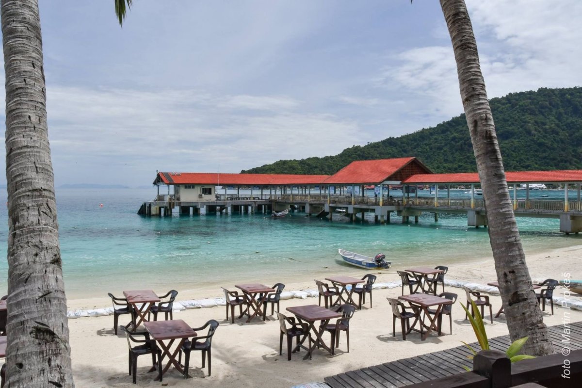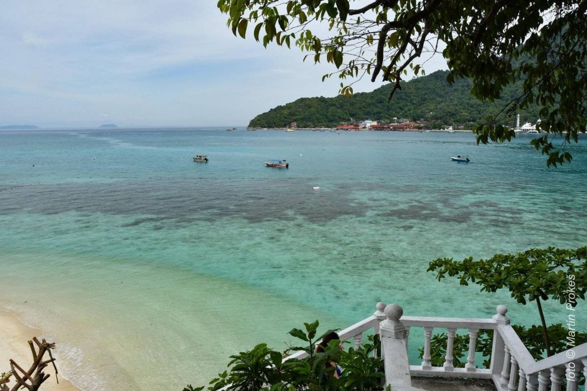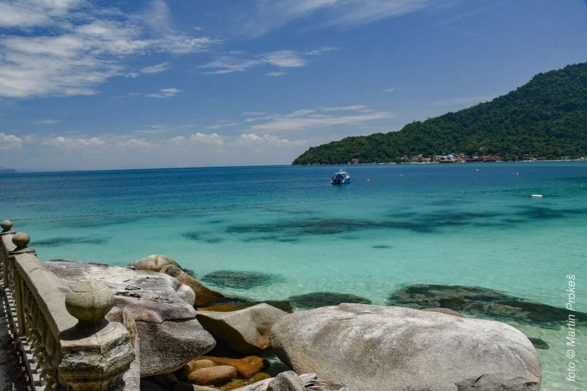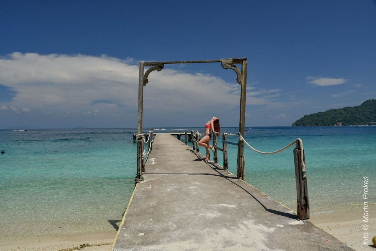 Zde jsme utrpěli trochu šok a to proto, že jsme vtéto části byli jediní turisti, nikde nebyla otevřená žádná restaurace ani obchod, a ubytování jsme měli téměř vdžungli, až po projití celou vesnicí na kopec. Viděli jsme autentičnosti, cítili všelijaké pachy, viděli všechno možné, ale ráj na zemi to úplně nebyl. Ubytování ani místo to nebylo vůbec ideální, a proto jsme šli zabavit na pláž a dívali se na rybičky a korálové útesy tyčící se hned u mola. Naštěstí po připojení na wifi jsme sehnali ubytování na druhém ostrově na další 3 dny a tak jsme se těšili, že změníme lokál. Není vůbec žádný problém sehnat zde vodní taxi, které vás během 10 min dopraví kam si řeknete. Večer jsme ještě pátrali po nějakém jídle, ale kvůli ramadánu to bylo velmi obtížné. Nakonec se jedna prodavačka ovoce slitovala a uvařila nám rýži skuřecím a ktomu skvělý papájový džus, který byl tak sladký a dobrý, že bych to mohla pít každý den. Tak tohle byla Fisherman Village – nedoporučuji, pokud nestojíte o takové autentické zážitky. Možná jedinným plusem bylo, že v pokoji měli tichou klimatizaci.