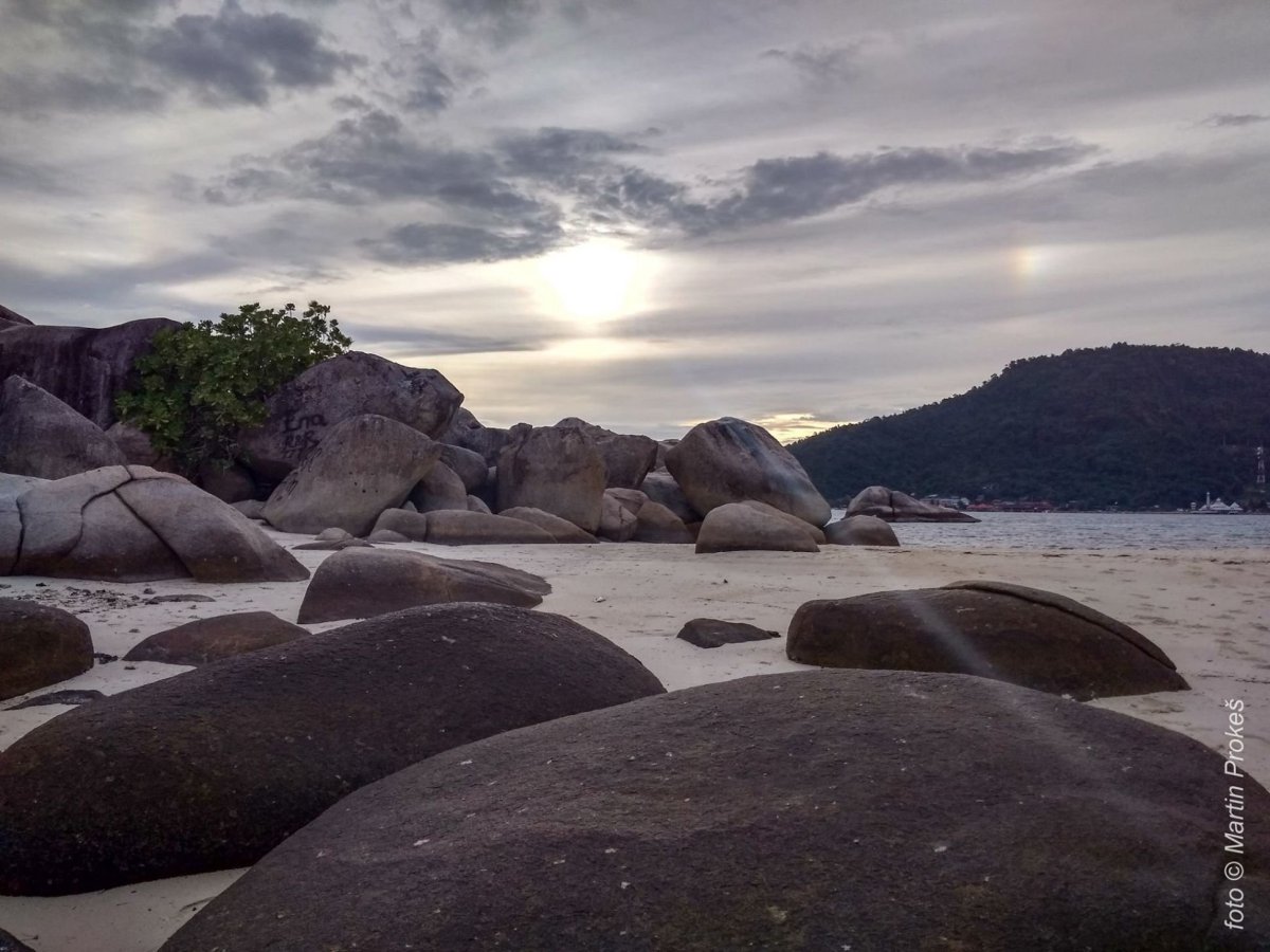 Pokus o pár uměleckých fotek na těchto plážích, když právě slunce ukázalo svoji pravou tvář a obloha byla jako vymetená. Tahle série fotek zposledního dne je snad nejvydařenější. Narazili jsme i na prázdné molo a houpačku vmoři a samozřejmě celou dobu jsme byli téměř sami. Takový Adam a Eva ztraceni vráji. Na konci pláže jsme objevily kameny typické těm na Seychelech. Během procházení se po pláži jsme narazili na poraněného varana, kterého jsme zachraňovali a obstarávali potravu.