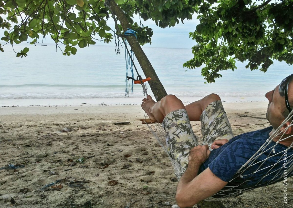 Po přijetí na ostrov Besar, do Bayu Dive Lodge, zahlédnutí Arwana resort a vůbec spatření té vylidněné pláže, to jsme si konečně připadali jako vráji. Tenhle kousek ostrova se vůbec sničím nedá srovnat. Tohle byla neskutečná nádhera. Přivítal nás velmi milý personál, ubytování jsme měli vpěkných chatkách. Na celém tomto pobřeží nás také nebylo moc, ale rozdíl byl vtom, že místní byli na turisti připravení a všude bylo otevřeno. Těch restaurací tady bylo víc než dost, ceny se mírně lišily ale pláže nádherné, moře čisté, občas nějaké rybičky, a všude zvláštní díry vpísku. Až později jsme zjistili, že to je od krabů. 3 dny jsme byli vtomto ráji, koupali jsme se vteplém moři a opalovali se. Ten moment, kdy nic nemusíte řešit, jen kdy se najíst a jestli máte nabitý foťák/telefon je jediná starost. Velmi jsme si ten pocit užívali. Nesmím ještě opomenout čerstvé ryby na grilu, které tady dělají luxusně. (Nejlepší je asi baramundi, zkusili jsme i tiger prawn, ale ta je byla bez výrazné chuti, spíše neochucená žádným kořením).