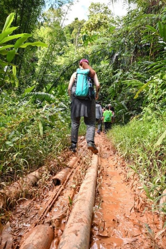 Noc jsme přežili za doprovodu všelijakých zvuků z džungle – papoušci, opice skákající po střeše, rostoucím banánovníku přímo před dveřmi a možná i pár pavoukům a ještěrkám sídlících vkoupelně. Těšila jsem se na změnu místa, protože tohle jsme možná úplně nevychytali.