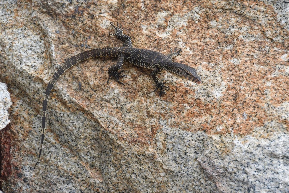 Zpět ale kostrovu. Nádherná a dlouhá pláž, která nás pokaždé něčím překvapila. Než jsme došli na samotný konec, trvalo to téměř hodinu. Cestou jsme narazili ne jednou na varany, malé i velké, ale to jsme ještě nevěděli, že jsou vlastně nebezpeční (respektive, můžete vykrvácet když vás olízne či kousne). Ale nebojte, nic se nám naštěstí nestalo.