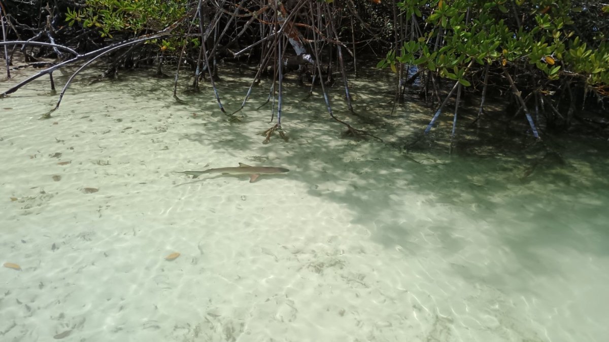 Jinak zrovna před 3,5 hodinami mi připlul při brodění u mangrovů u pláže blacktip shark až na 10 cm k noze, když jsem ho fotil, ale jak jsem se pohnul, on se lekl a odplaval. Byl teda jen malý - asi 80 cm. (Teď jsem na trajektu - malé lodi s 32 sedačkami - ze Santa Cruz na Isabelu a kupodivu je tu silné wifi a moře klidné, že jsem si to mohl přečíst.) Tady na Galapágách je vše levné, ale lodní výlety jsou drahé.