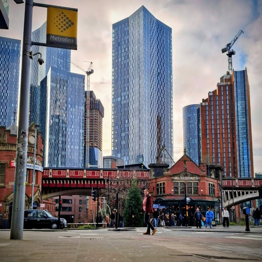 Castefield – historická čtvrť, za kterou se nově tyčí mrakodrapy. Tato čtvrť je plná vodních kanálů a neformálních barů.