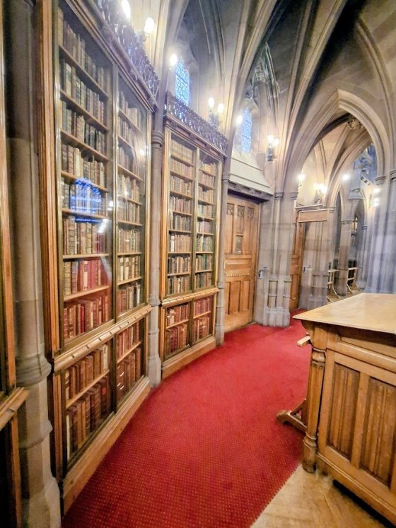 The John Rylands Library – z roku 1990, impozantní budova, kde jsou ukryté starodávné knihy, stále slouží ke studiu, vstup je zdarma, a při procházení chodeb si budete připadat jak v Bradavicích