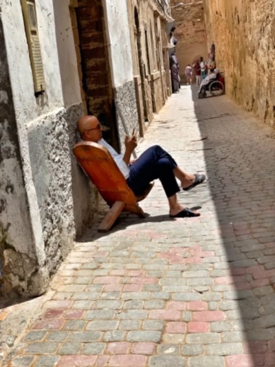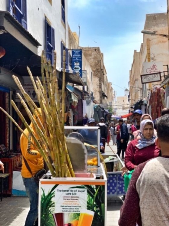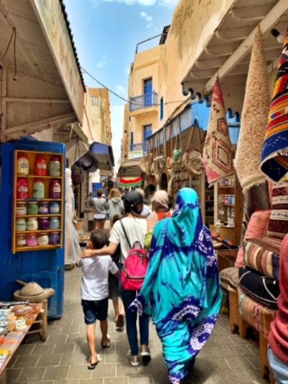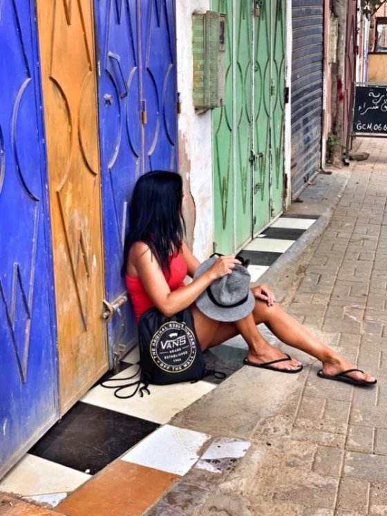 Vyrážíme k moři! Moře sice není kdovíjaké a obrovskou pláž okupuje milion lidí, ale vůně moře, hebounký písek a sklenička růžovky to vyvažují dokonale. Z tohoto výletu určitě vychází jako vítěz městečko, ale i tak jsem ráda, že jsem marocké moře zažila!