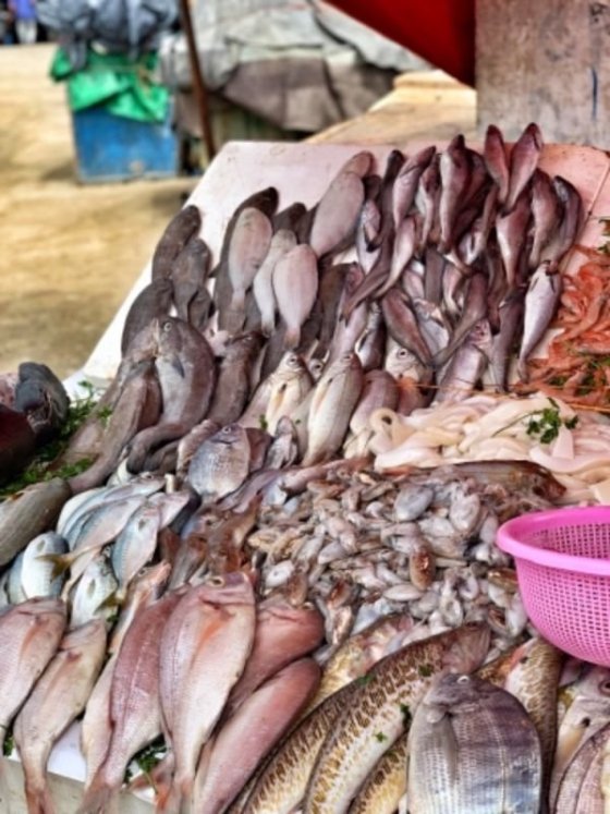 Přístav lemuje jeden prodavač ryb vedle druhého a nakukovat jim pod ruce čistící ryby je vážně mega zážitek. Dvacet tisíc mil pod vodou od pana Vernea proti tomuto nic! Mimo palety pestrobarevných ryb je úžasný pozorovat i ruch v přístavu a vůbec místní obyvatele. Turistů je nás tu hrstka, takže vnímám, že ještě větší zážitek je pozorování nás jejich očima. Na konci ostrova máme trošku nepříjemný pocit, protože jsme úplně odříznuté od města, takže se rozhodneme nelézt na skály, jak jsme plánovaly původně a vracíme se do útrob hradeb tohoto města.