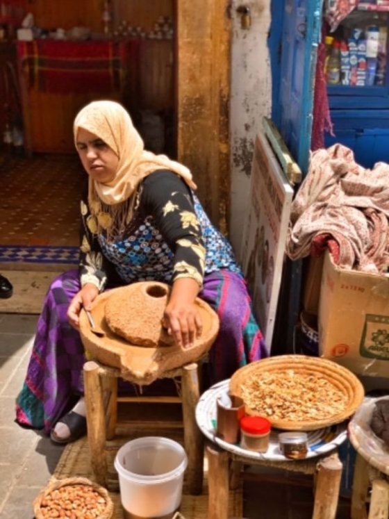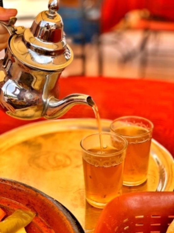 Rozhodně doporučuji zajít do některé místní kavárny s terasou a výhledem na náměstí a dát si vyhlášený místní mátový čaj. To je Maroko jak se patří! Taky zkuste výborný a čerstvý chleba v podobě placky (často přímo vytažený z pece) nebo nějaký ze spousty dortíků a dezertů! Na rybím trhu čerstvě smažené sardinky a krevetky a ve městě ratatouille v keramickém hrnci!