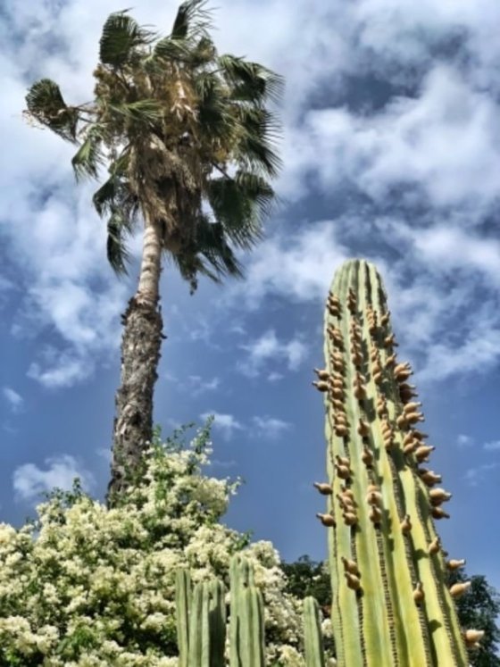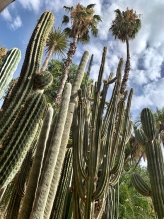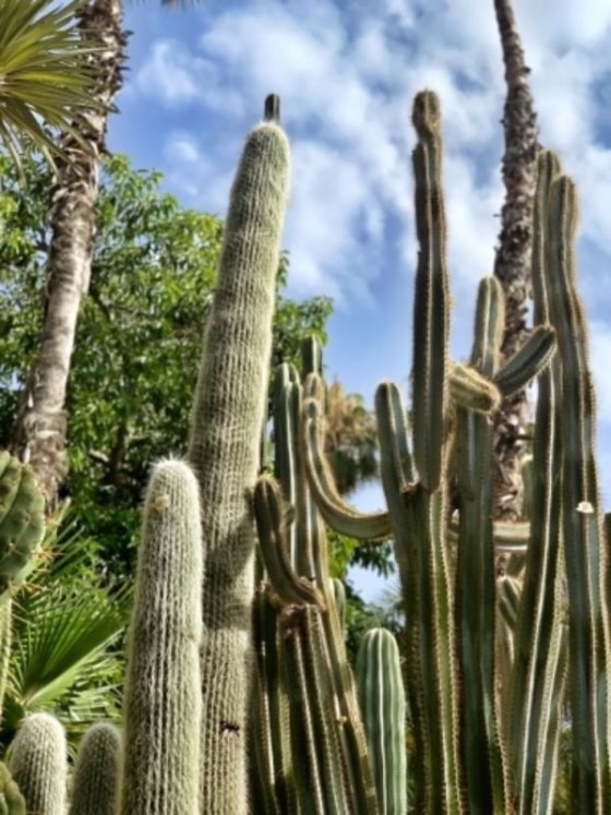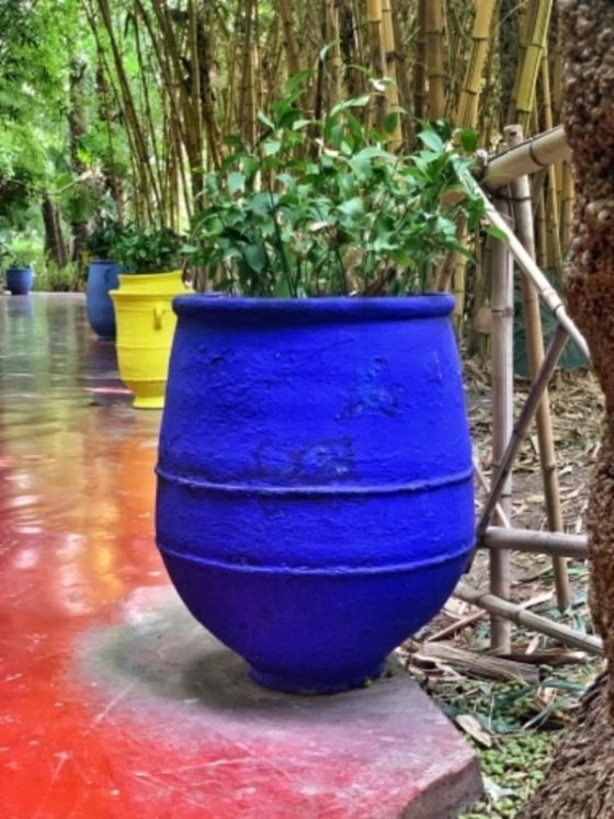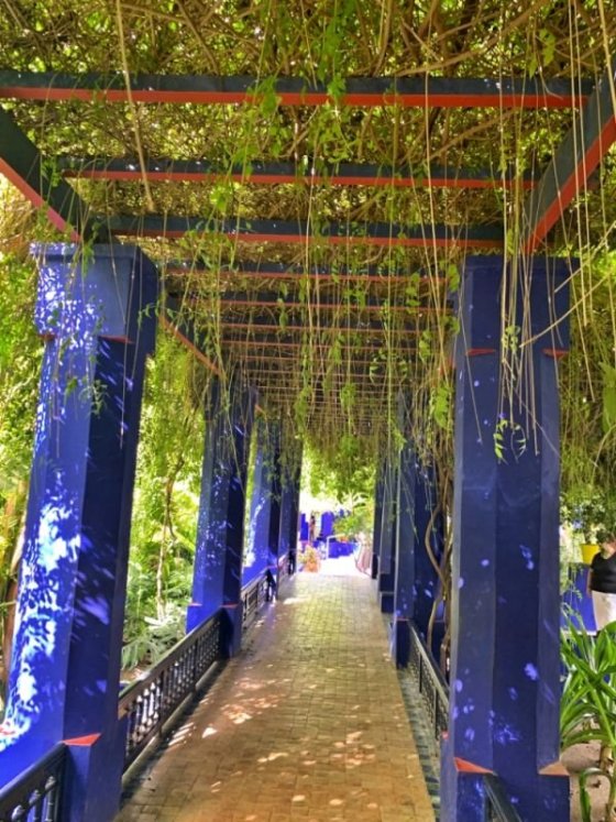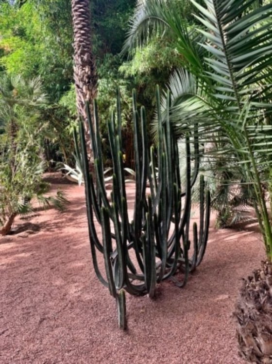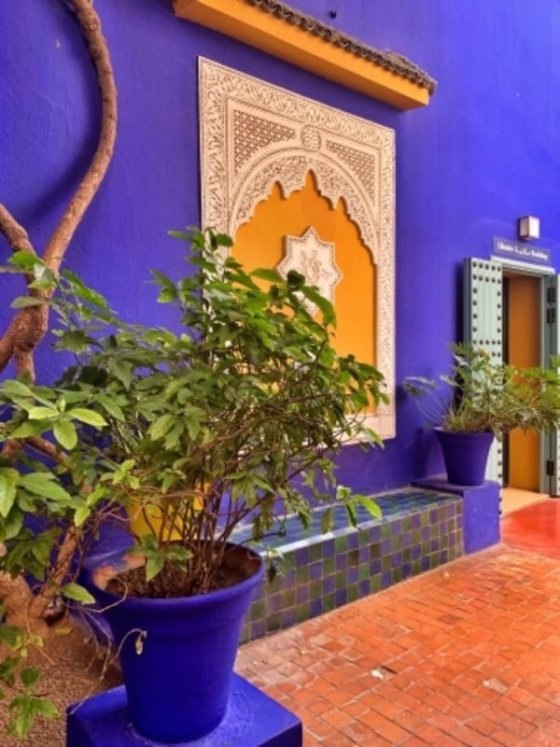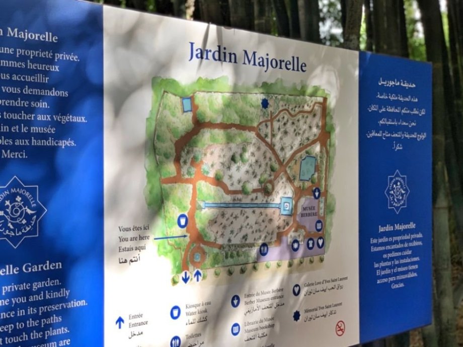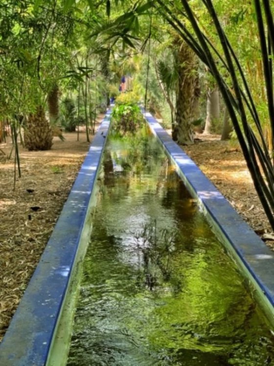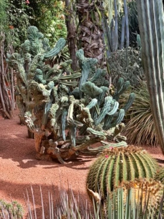 I přes to, že jsme moc nechodily, spíš si vozily zadky, jsme docela zničené. Asi i to vedro.. V ubytku jsem se ráno nášeho marockého boha ochoty zeptala na standardní cenu taxi po městě - 30 dirhamů - a tuto informaci nyní zúročíme. Po vylezení z busu u autobusáku stopujeme taxi k místní vyhlášené zahradě Majorelle Garden. Taxikář na nás zkouší 150 dirhamů, ale během vteřiny mu dojde, že jsme “skoro místní” a za 30 dirhamů nás vysazuje u zahrad i s výkladem a tipem, kde koupit (konečně!!!) alkohol…🍸