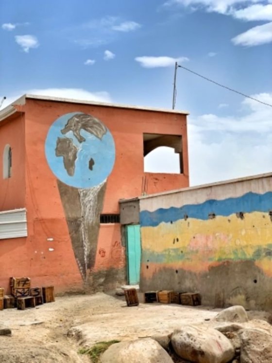 V Marakeši jsme vystoupily na autobusáku, slunce opět peklo (aby ne - chvilka po poledni), kvalitní žabky z New Yorkeru za 19,- Kč se mi rozpouštěly na nohou a nás napadlo, jak uniknout téhle výhni! Nasednout na další bus a vyrazit ještě k umělému jezeru LALA TAKERKOUST . Časově furt dobrý, vrátíme se později odpo a co v Marakeši stihneme, to stihneme. Sedáme na bus č. 45, tentokrát za 7 dirhamů v jednom směru a opět jako jediné “turistky” vyrážíme s místními směr Lala. Je to hodinka jízdy opět dechberoucí krajinou a my vystupujeme v ještě větší “díře”, než byla Ourika. Jsme nadšené! 💛 Tady se čas opravdu zastavil a ve vesnici obehnané pohořím Atlas nám nic nechybí. Teda nic… Něco trochu jooo. To jezero! 🙈😂Nikdo nám neřekl, dokonce ani strýček Google a teta Wiki, že v červenci v Maroku voda prostě není.. Prošly jsme se kolem vyschlého dna, zkoukly stavbu přehrady a pak prokorzovaly vesnicí roztahanou v poušti jak Lažánky za Blanskem.