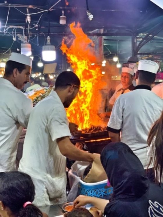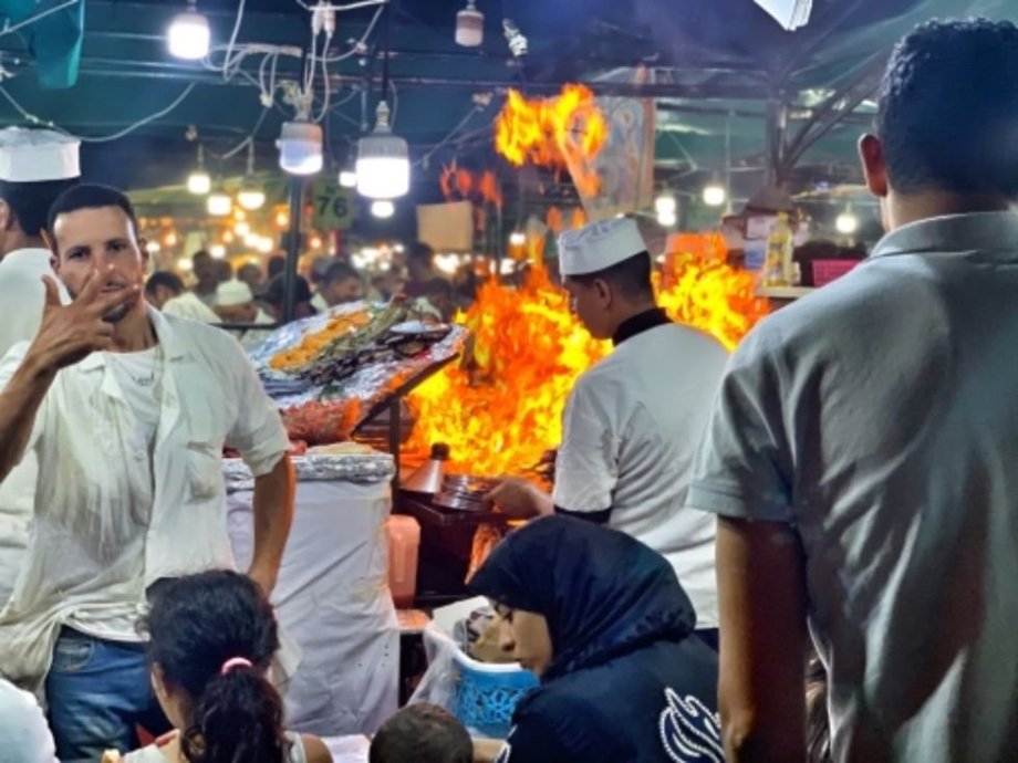 Večer je toto místo opravdu magické. Veliká podívaná! Každopádně batoh na hrudník a v kapse ani posmrkanej kapesník, to je nutnost! 🙈🙈 Uprostřed náměstí je jeden stánek s občerstvením za druhým, po obvodech náměstí tradiční souky, kde se dá koupit opravdu cokoli. Navíc se zde právě se setměním schází výše zmínění hudebníci, kejklíři, vypravěči příběhů, věštci…, čímž město získává svůj středověký nádech.