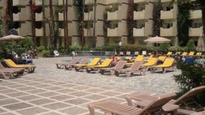 Ráno to není o moc lepší. Naopak. Po snídani volíme odpočinkový den ve stínu hotelové zahrady. Bazén, lehátka pod slunečníky, altán, kulečník a jiné radosti nás uspokojí na celý den. Až do večeře relaxujeme. Po večeři krátká procházka kol hotelu, kde alespoň v jednom z "butiků" zakoušíme pohodlnost místního šatstva. Hábit dobrej. Večer si u osvětleného bazénu otevíráme lahev meknéského bílého, lehce slavíme Džejny svátek, pozorujeme hejno zdivočených koček a vymýšlíme akčnější plány na další dny.