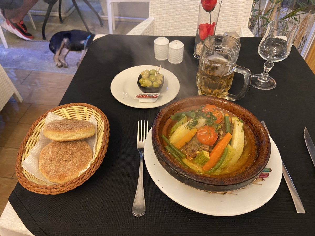 To už je ale odpoledne a vracím se k autu a jedu zpět na hotel. Přijíždím až kolem 7 večer. Dnes mířím na večeři trochu dál. Restaurace Le 20 Restaurant je místo kam se pak vracím i další večer. Zkouším trochu exotiku a objednávám tažin z velblouda🐪. Chuť to nebyla vůbec špatná a klidně bych si ještě někdy dal😊. Po jídle je ještě čas na místní mátový čaj a poté se odplížím na pokoj.