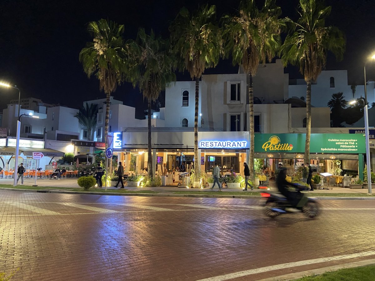 Odpoledne přijíždím k hotelu. Hotel La Suite je u pláže a taky má hlídané dost velké parkoviště. Vypadá to na dobrý výběr. Zvládám se rychle ubytovat a potom už moje cesta vede na pláž. Přístup na promenádu mám prakticky naproti hotelu, tak se chvíli toulám po pláži a pak si lehám na klidnější místo a relaxuji na sluníčku až do večera. Pak už je tu čas večeře. Restaurace u hotelu mě zrovna nenaplňují důvěrou. Chvíli se toulám večerní promenádou a později moje volba padla na Le Maxwell. Zde si dám pivko a kuřecí tažin a vracím se na hotel. I přes diskošku, která se ozývá někde v útrobách hotelu, tvrdě spím až do rána, byl to dlouhý den.