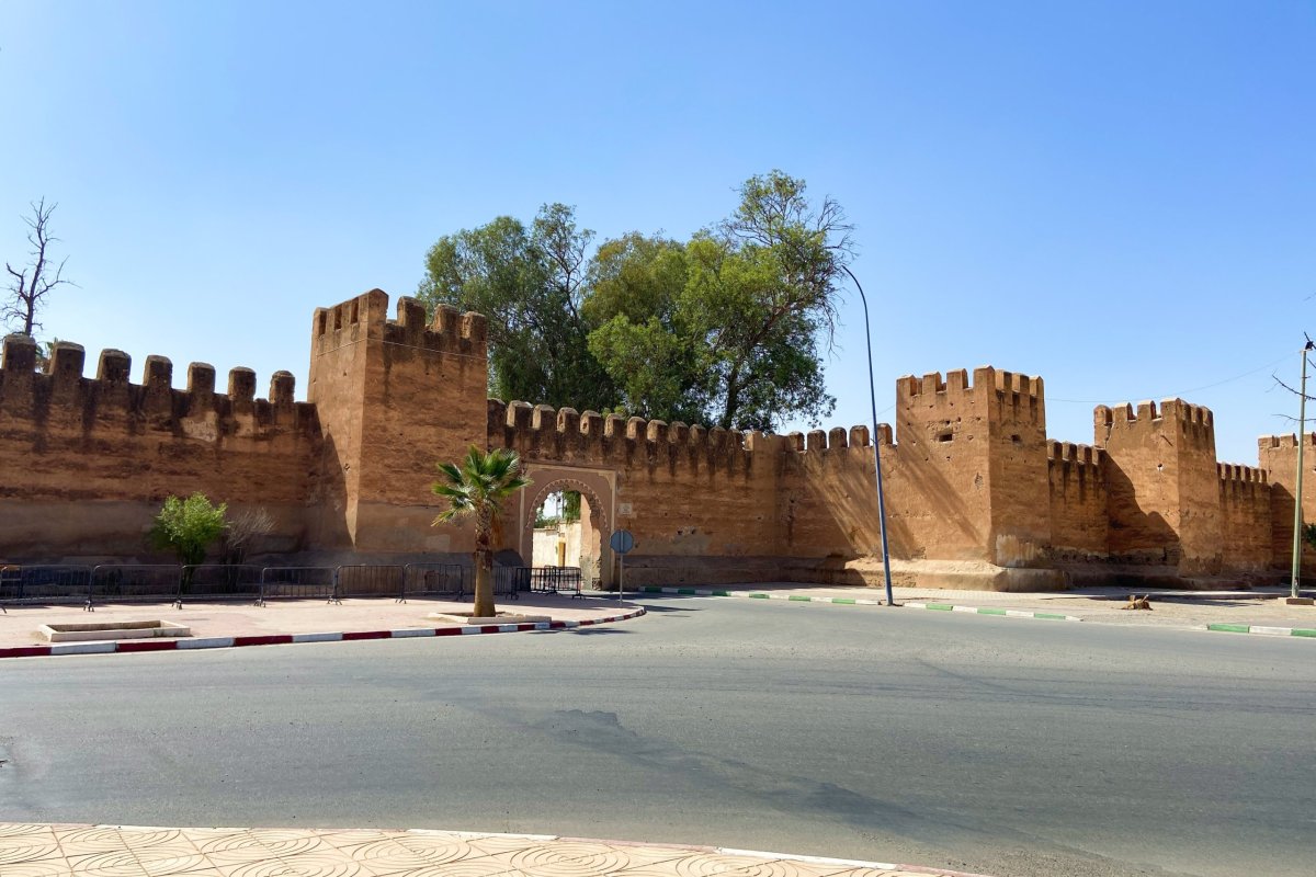 Taroudant, který je někdy přezdívaný „malá Marrakéš“ je asi hodinu cesty z Agadiru. Cesta sem je opravdu jednoduchá. Kolem poledne jsem již na parkovišti nedaleko centra a vydávám se na procházku k historickému centru. Moje cesta začíná nedaleko brány Bab Lkhmis a pokračuji dál podél hradeb. Míjím bránu Bab Lahjer a odbočuji k mešitě Hassana I. Vyhlídka na ni je lemována řadou palem a mezi nimi dlouhá fontána (bohužel bez vody). Toto je jeden z ikonických pohledů na Taroudant, který ani já nemůžu vynechat.
