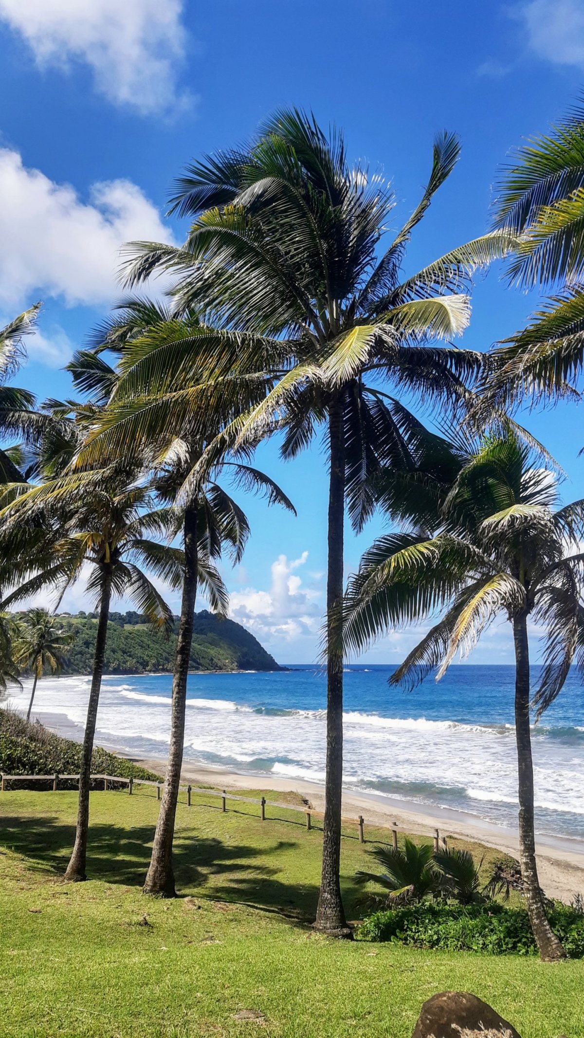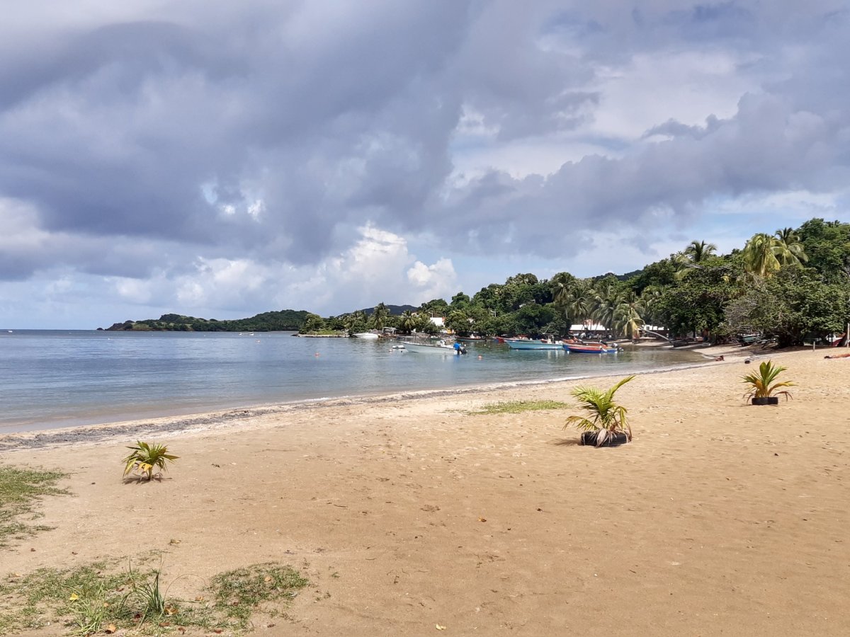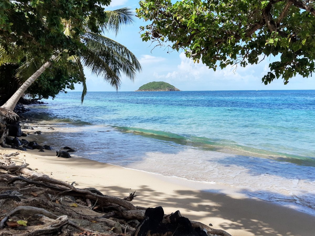 Ten si užíváme hned následující ráno, kdy na balkoně v klidu snídáme. Vidíme i na místní dominantu, sopku Monte Pelée, která je, a v tom zkušenosti ostatních rozhodně nelžou, prakticky neustále v mracích. Sedáme do auta a vyrážíme na první seznámení se s ostrovem. První volbou je poloostrov u La Trinité. Když dojedeme na konec cesty, kde plánujeme menší túru, přichází intenzivní průtrž mračen. Radeji to vzdáváme a otáčíme se zpět. O pár kilometrů dál už je pěkně, takže zastavujeme v pobřežní vesničce Tartane. Je sobota poledne a zde panuje naprostá pohoda. Procházíme místní promenádou, kolem malého trhu, kde rybáři doprodávají čerstvé ryby a nakonec zakotvíme na malé místní pláži, kde jsme úplně , ale úplně sami. Poprvé se tak smočíme v oceánu, který je dnes stejně teplý jako vzduch. Spíš teplejší. Prostě kafe. Protože je zde ale nuda, po chvíli pokračujeme dál. Do La Trinité, kde odpoledne trávíme na poloprázdné pláži de Cosmy, což je úzká písčitá pláž s dostatkem stromů, stínu a ideální ke koupání i šnorchlování.