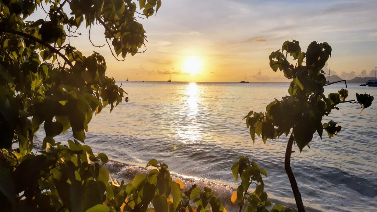 Když nás to omrzí, sedáme do auta a podle mapy zcela náhodně vybíráme další pláž – Anse Caritan kousek jižně od Sainte-Anne. To se ukazuje jako excelentní volba, jde o malou a úzkou pláž s dostatkem stínu, jejímž hlavním kladem je její opuštěnost. Je nás tu celkem sedm. Užíváme si naprostý klid a čekáme na západ slunce, který dělá kulisu parádním katalogovým fotkám. Večer pak po návratu zakončujeme na naší téměř soukromé pláži u penzionu.