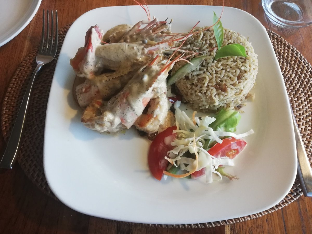 Co se týče kuchyně - vévodí tam kari a koriandr. To zabije snad všechny chutě :-) Párkrát se to dá, ale denně ne :-) Ochutnali jsme tam vynikající ananas i mučenku. Pili jsme Pina Colady s jejich místním rumem. Pivo Phoenix super, i citronová verze. Flying Dodo taky dobrý. Zmrzlina ve stánku na pláži hnus. V restauraci výborné krevety, langusty apod.
