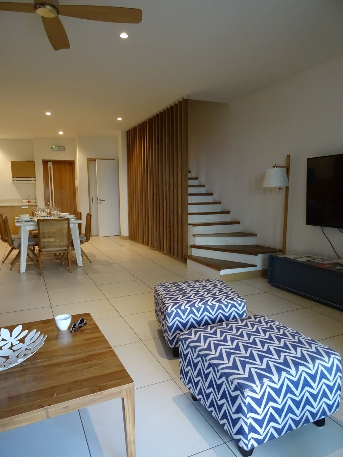 Sedm dní v hotelu plných dovolenkové pohody, skvělého jídla, drinků v kokosovém ořechu a spousty vodních sportů uběhlo až moc rychle a nás čekal krátký přesun na apartmán zamluvený přes air bnb v Latitude Luxury Seafront komplexu (hostitel Stephane) v Black River cca 25 minut jízdy od Flic en Flac. Za dvoupodlažní velkorysý apartmán pro 6 lidí se třemi ložnicemi a obrovských obývacím pokojem s příjemnou předzahrádkou jsme zaplatili 3600 Kč/noc.