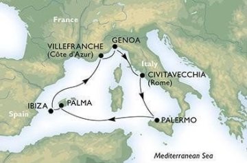 okružní plavba výletní lodí Janov-Řím-Palermo-Mallorca-Ibiza-Villefranche-Janov