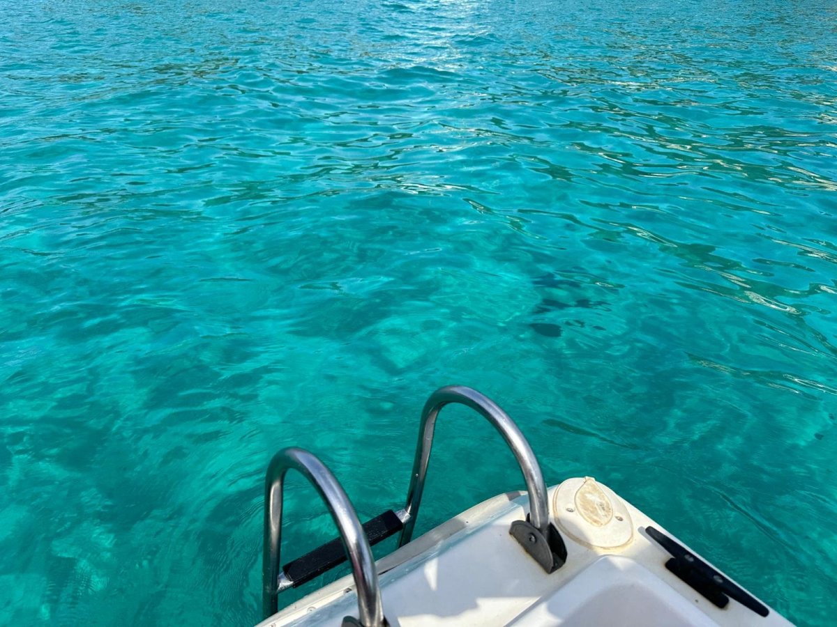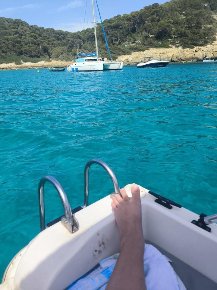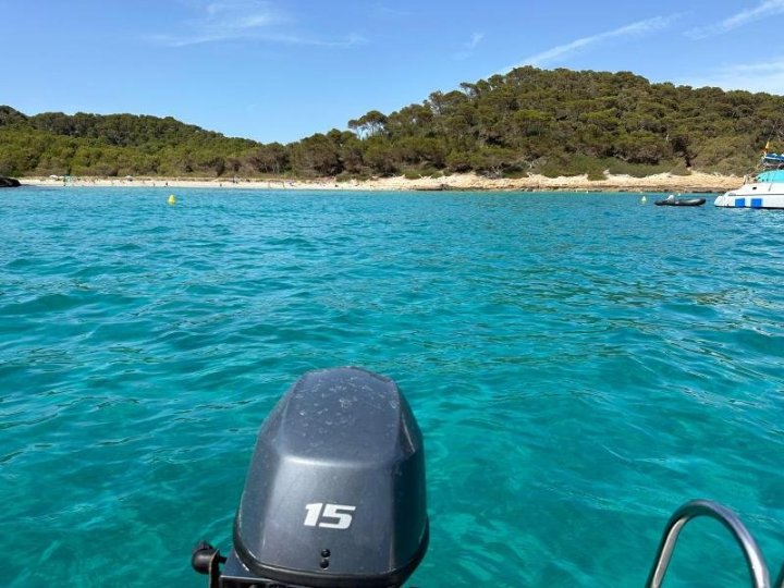 Tak na tento den jsem se opravdu těšila a rovnou jsem věděla, že zde padne i největší částka. Ale prostě jsem musela ❤ Na jednom z velkých (v poměru k Menorce) letovisek jsme si na 4 hodiny půjčili člun, který jsme si sami řídili kolem pláží jižního pobřeží. Byl to první můj vyřešený výlet - bookovala jsem člun už v dubnu. Platila jsem ihned 100 Eur, na místě pak 170 Eur doplatek + 100 Eur vratná kauce. Vybrala jsem si minorboats, společností kolem celého ostrova je však více a také pronajímají individuální majitelé. Dávejte si pozor, co všechno ten pronájem obsahuje - hlavně na položky palivo a pojištění, ať vás pak neodrbou na dalších poplatcích. Také si dávejte pozor na typ člunu! Sin titulacion - neboli bez řidičáku na lodě - ten si půjčíte i bez kapitánských zkoušek. Jinak si půjčujete člun i s kapitánem a za toho se platí zvlášť.