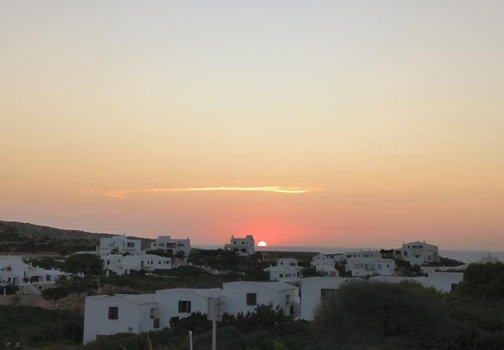 Podvečer jsme se pak prošli z vršku z našeho apartmánu až dolu k pláži na Cala Morell, kde jsme se okoupali. Pláž je taková drsnější než v prvním letovisku Punta Prima a má svoje kouzlo. Sama plážička je spíše malá, okolo na útesech jsou však koupací platformy, takže místa dosti a člověk si může zařádit. Navíc je zde půjčovna paddle boardů a malá centrála vodních sportů. My jsme vytáhli šnorchl (tohle ubytko jsem naschvál vybrala, že ta pláž má být super na šnorchlování) a teda fakt jsem byla velmi mile překvapená, jak moc živo v té zátoce je na to, kolik je tu lidí a lodí a co vše se zde děje. Bohužel jsem nabíjela akční kameru blbým kabelem, takže mi kamerka zdechla a fotky nemám. Alespoň jsem si mobilem mohla zvěčnit krásný západ slunce z našeho kopce.