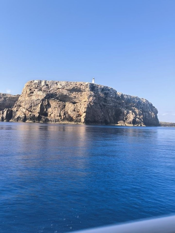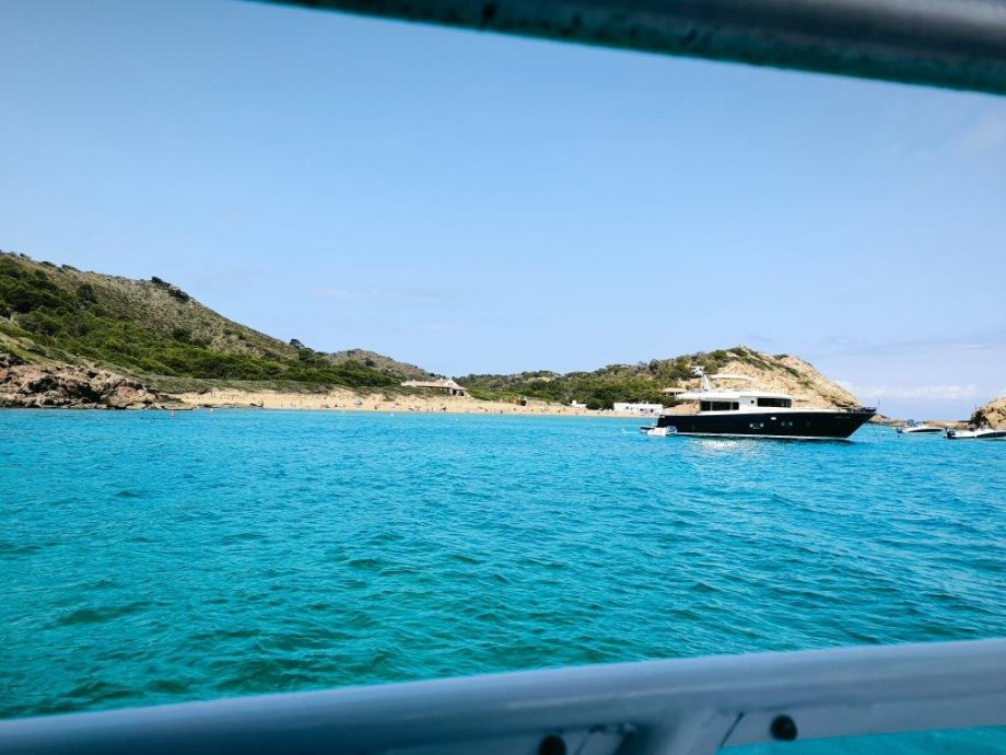 Posádka nás přivítala Pomádou. Ne že by nám chlapci předvedli taneček na Greased lightnin´(I když jako mně by to nevadilo), ale naservírovali nám na přivítanou klasický menorský drink s názvem Pomáda. Jedná se o Gin místní výroby a citronovou limonádu. Mňam. Pak vyrážíme a z tlampače zepředu se ozývají informace asi v šesti jazycích. a když jsme se dostatečně nachytřili, můžeme si užívat cestu po krásně členitém pobřeží. Dál asi není co psát, nechám fotky mluvit za vše. V rámci exkurze zastaví několikrát na koupání a šnorchlování na krásných plážích jako jsou Pregonda nebo Cavalleria. Prostě voda všech barev, z vrchu i spodu.