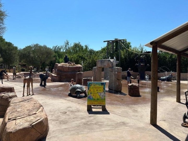 Let máme až večer, takže máme naplánovaný přeci jen ještě jeden výlet a to do Zoo nebo spíše takového zooparku, kde se nachází zvířata darovaná a z různých záchranných akcí. Zvířenu mám moc ráda a tady jsem naprosto uchvácená konceptem. Jednak je nádherně zelená a všechno tu působí harmonicky, i ta zvířata vypadají fakt happy. A je tu prostě co dělat, především pro rodiny s dětmi. Pro děti je tu i indoor klimatizovaná hernička, ale hlavně super klenot a to hřiště ve tvaru zvířátek a menhirů, které celé ožívá vodními prvky v určité hodiny, takže se tam dá příjemně ochladit.