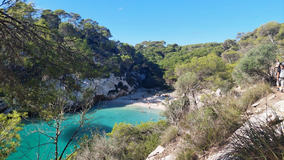 Jedeme do městečka Serpentona na jižním pobřeží. Odtud jdeme po značené trase Cami de Cavalls (ta vede kolem celé Menorky) k plážím Cala Macarella a Macareletta, cestou k nim odbočíme na několik vyhlídek. Pěší trasa je na https://mapy.cz/s/fovazujaha .