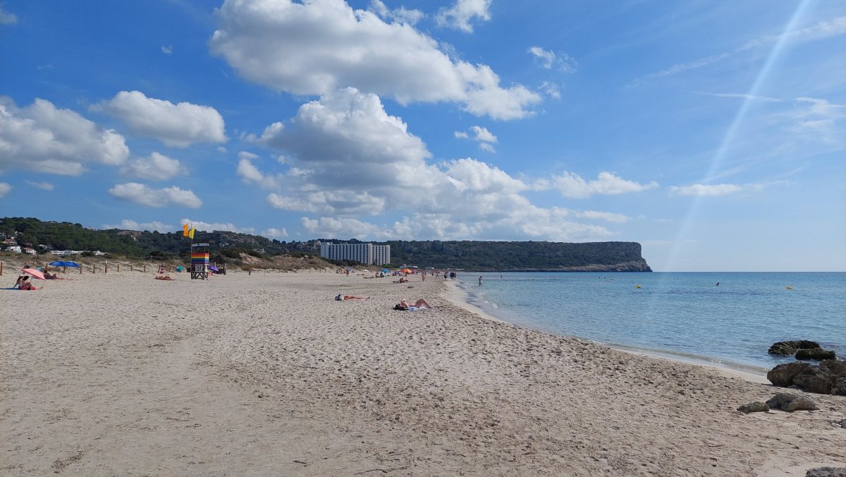 Cestou dolů se zastavíme v příjemném městečku Es Mercadal, jehož uličky stojí za procházku, kterou zakončujeme v kavárně. Potom přejedeme k největší písečné pláži Son Bou. Z těch, které jsme na Menorce navštívili, pro nás byla nejmíň zajímavá: do hloubky jdete desítky a desítky metrů, poblíž pláže jsou jakési bažiny a hnědá voda z nich obarvila jinak dokonale tyrkysové moře do nepěkných odstínů.