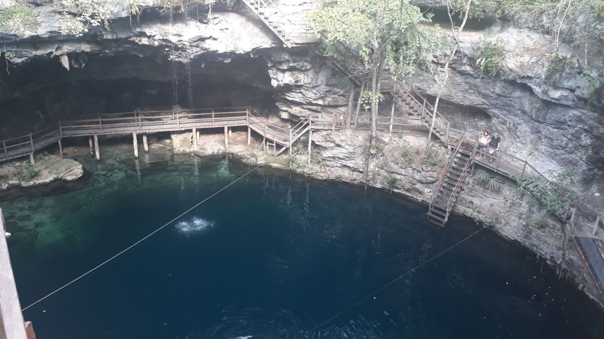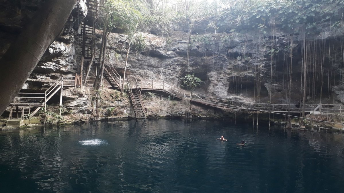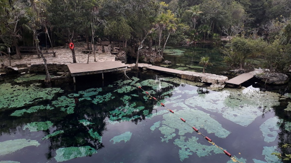 Díky jet lagu se vzbouzíme v 6, dáváme rychlou snídáni a jedeme navštívit naší první cenotu. Cenotes jsou vulkanická jezírka, kterými je celý Yucatán proděravěný jak ementál. Už předem jsme četli, že voda je krásně čistá se spoustou ryb, takže ideální místo pro šnorchlování.